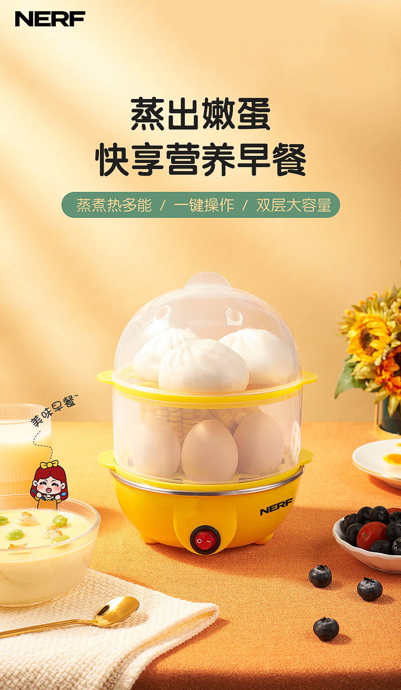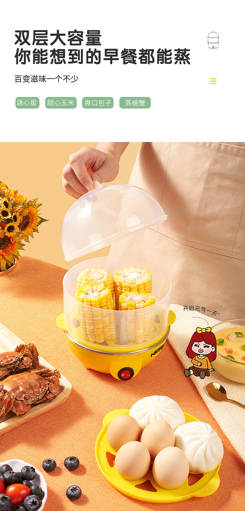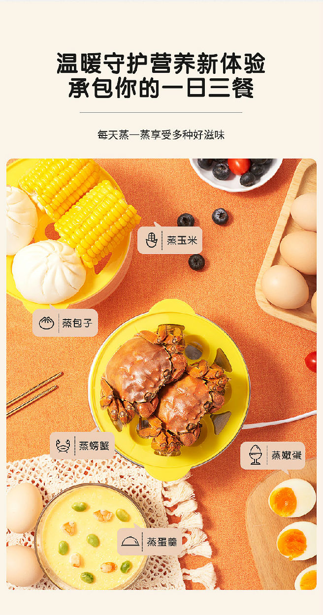 雙層大容量,蒸煮同步,防干燒保護
