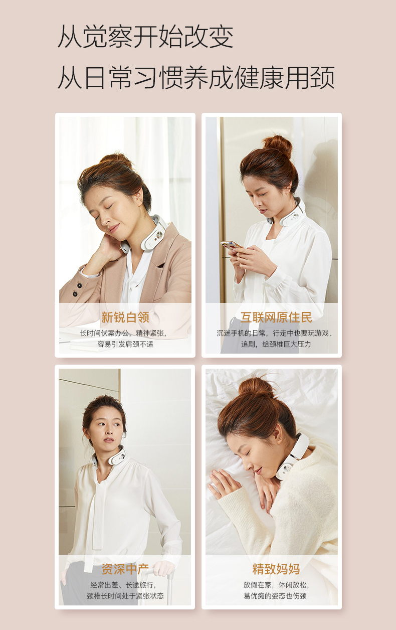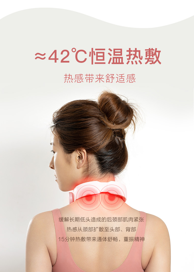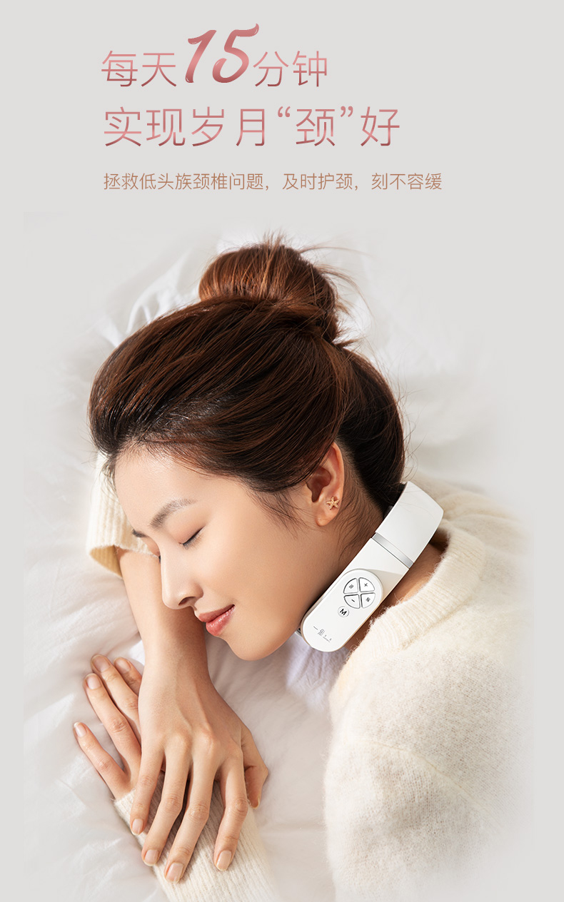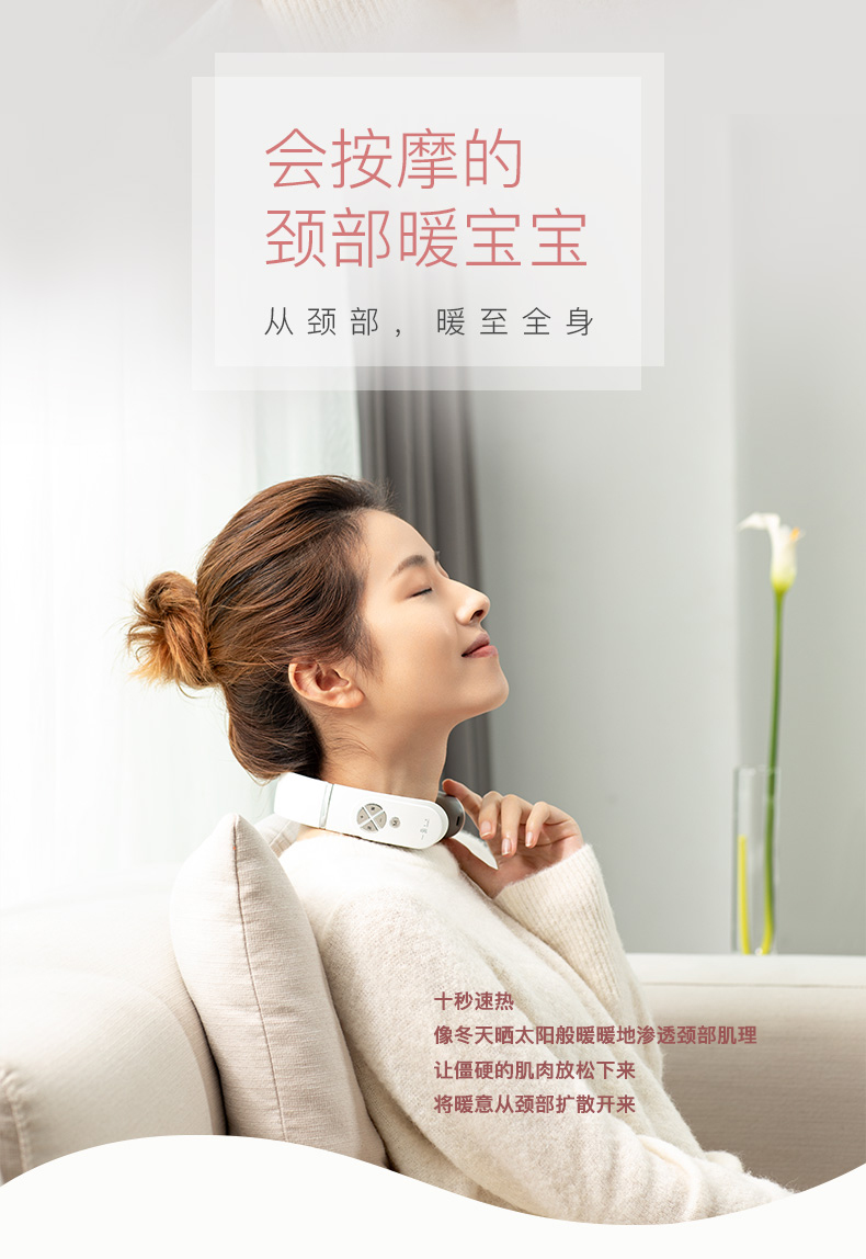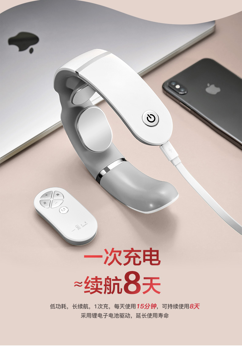 一維生活EMS頸椎按摩儀護頸電脈沖理療熱敷隨身攜帶頸部按摩器 4種按摩模式、1300毫安電池、時尚小巧便攜