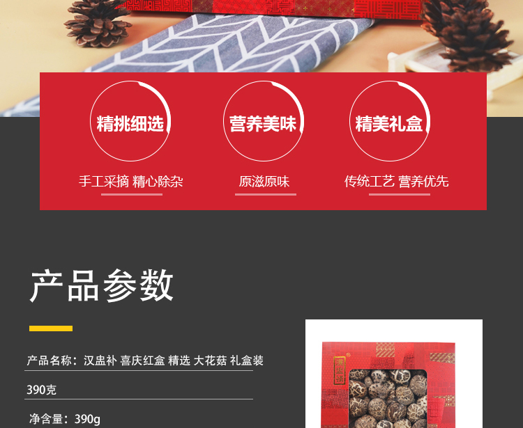 漢盅補 喜慶紅盒 精選 大花菇 390g 禮盒裝