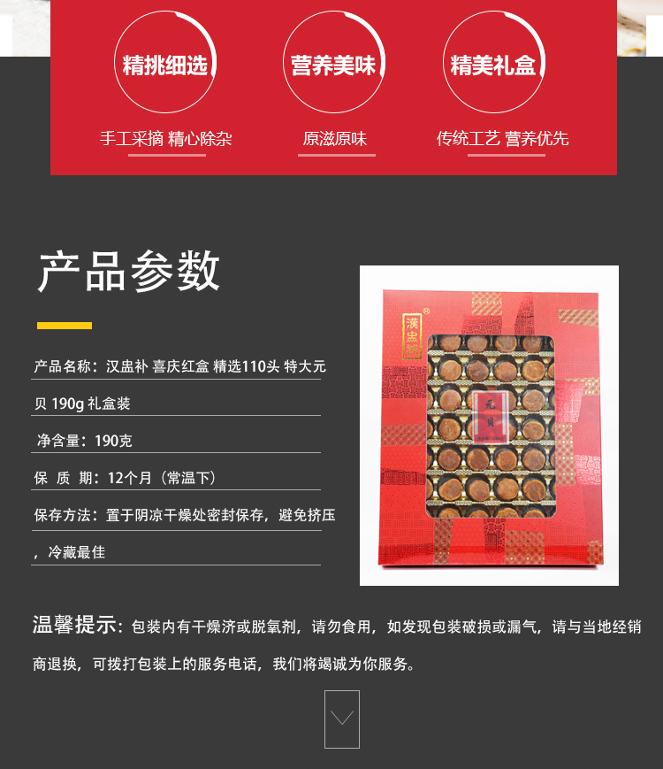 漢盅補 喜慶紅盒 精選110頭 特大元貝 190g 禮盒裝