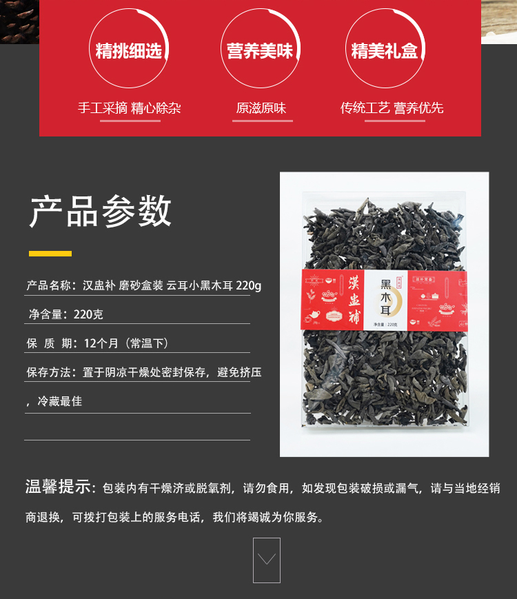 漢盅補 磨砂盒裝 云耳小黑木耳 220g