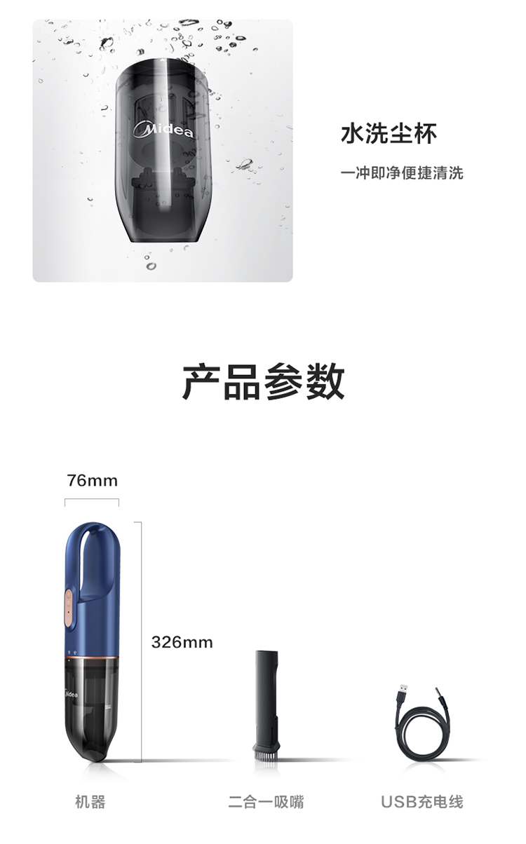 美的(Midea)干濕吹三用式 無線吸塵器 HDC10藍色