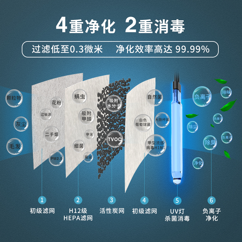 紫外線殺菌,濾網高效過濾,負離子凈化除味