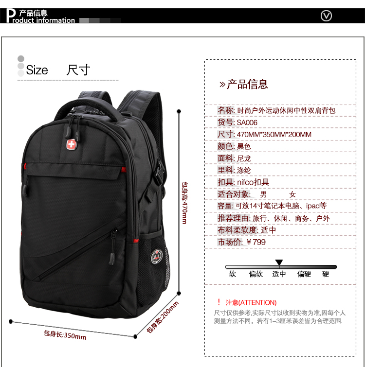材質(zhì):1680D彈道尼龍牛津布 里布滌綸重量:約1.2Kg 裝箱數(shù):10個/箱裝箱規(guī)格:50*47*76cm