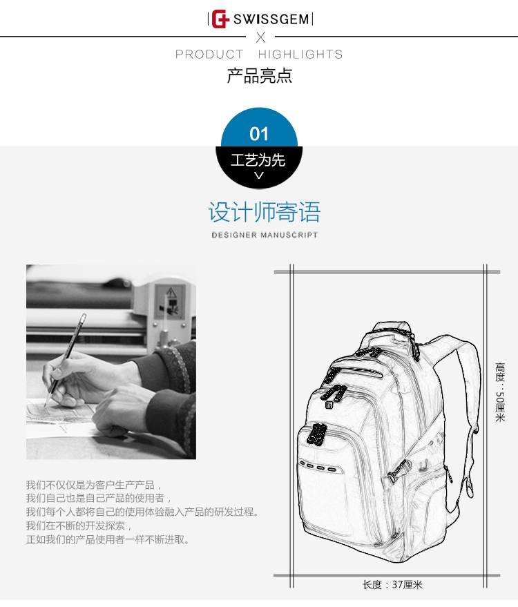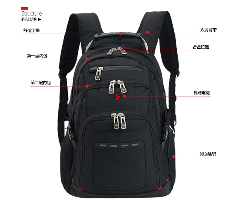 描述:五金注塑提手,3D背負(fù),符合人體工程學(xué)設(shè)計(jì)超容量新款電腦雙肩包,獨(dú)特面料設(shè)計(jì),更時(shí)尚新穎