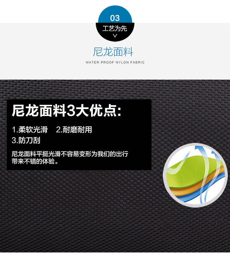 材質(zhì):20升防潑水、耐撕裂、防刀刮1680D/PU面料;