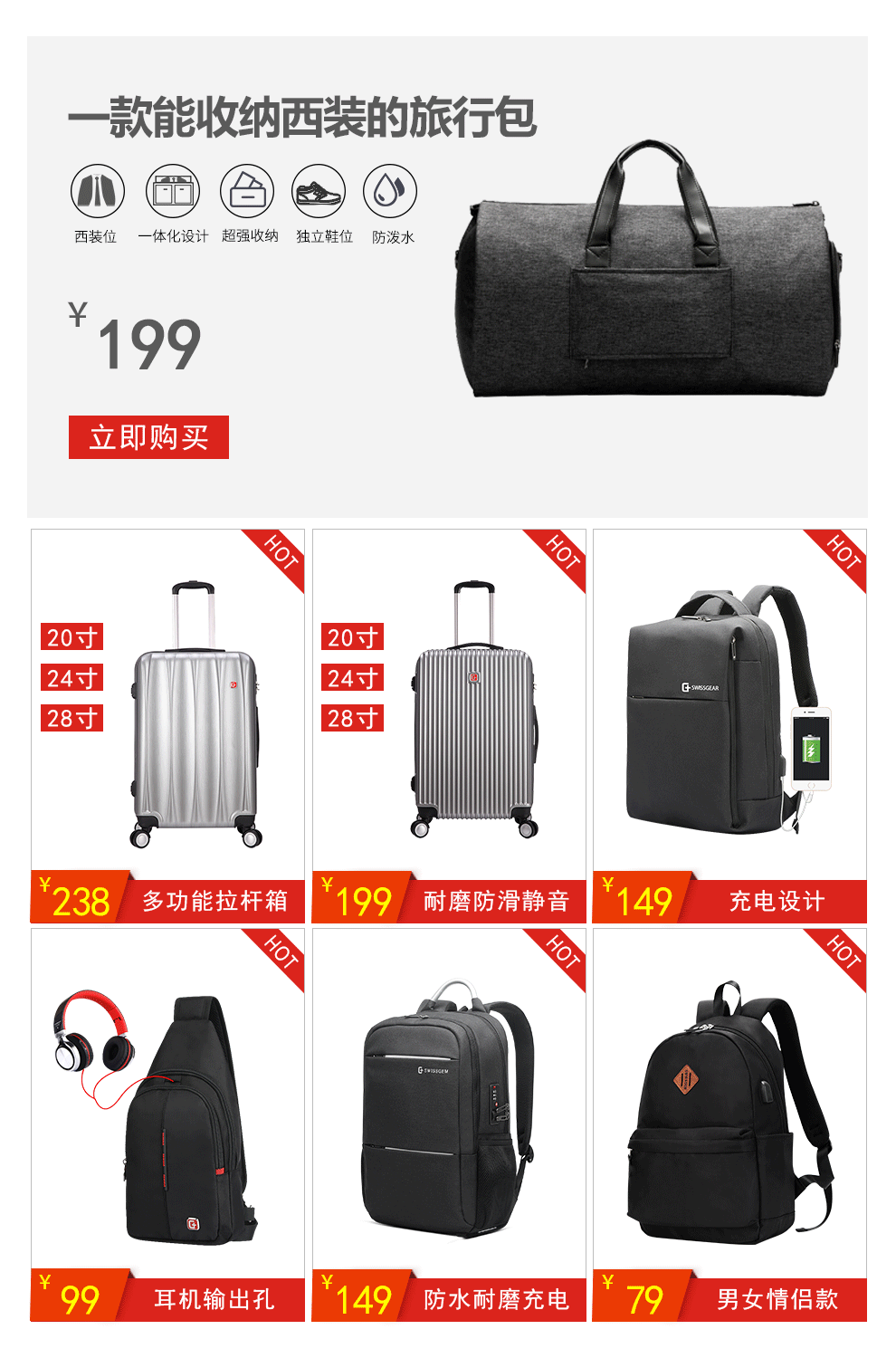 描 述:采用最新防震氣墊設計,有效保護電腦,多層次容納袋設計,分類別容納出差,旅行所需物品。