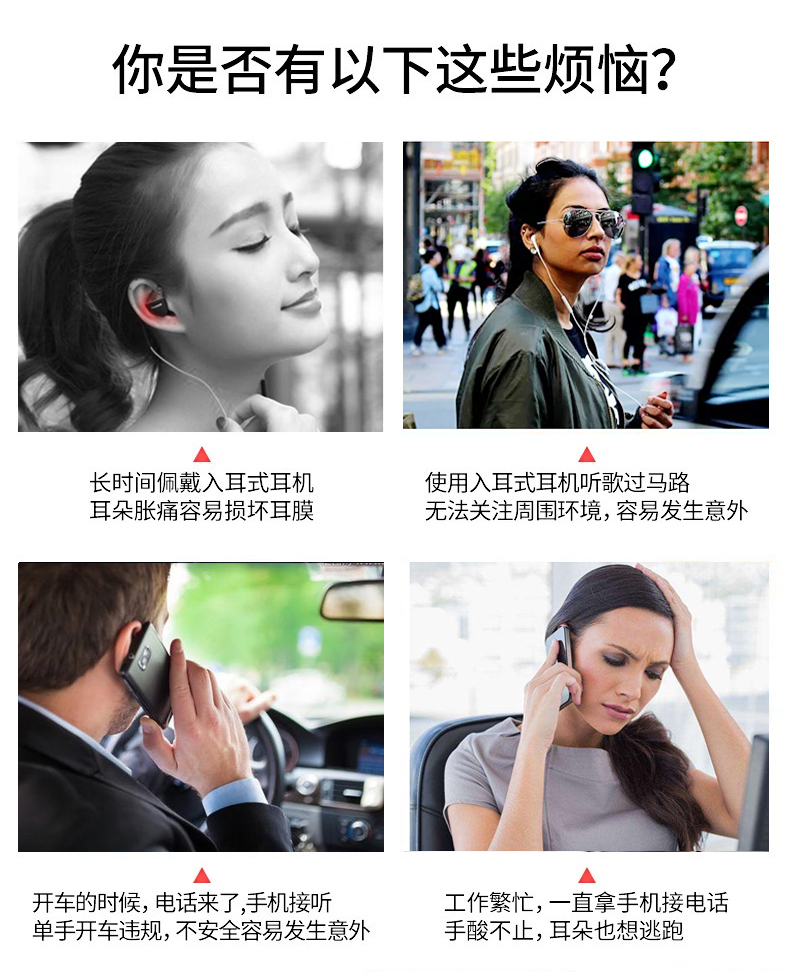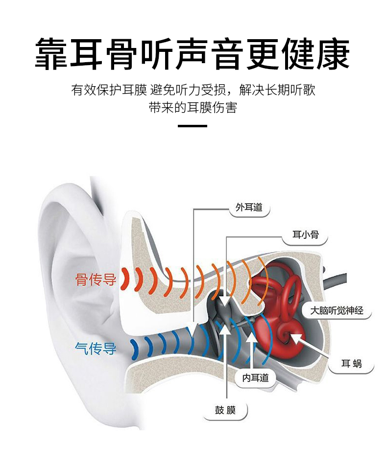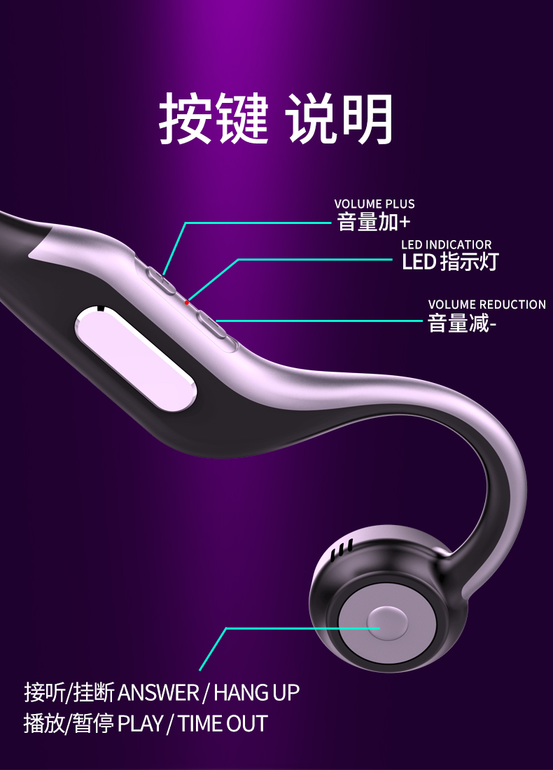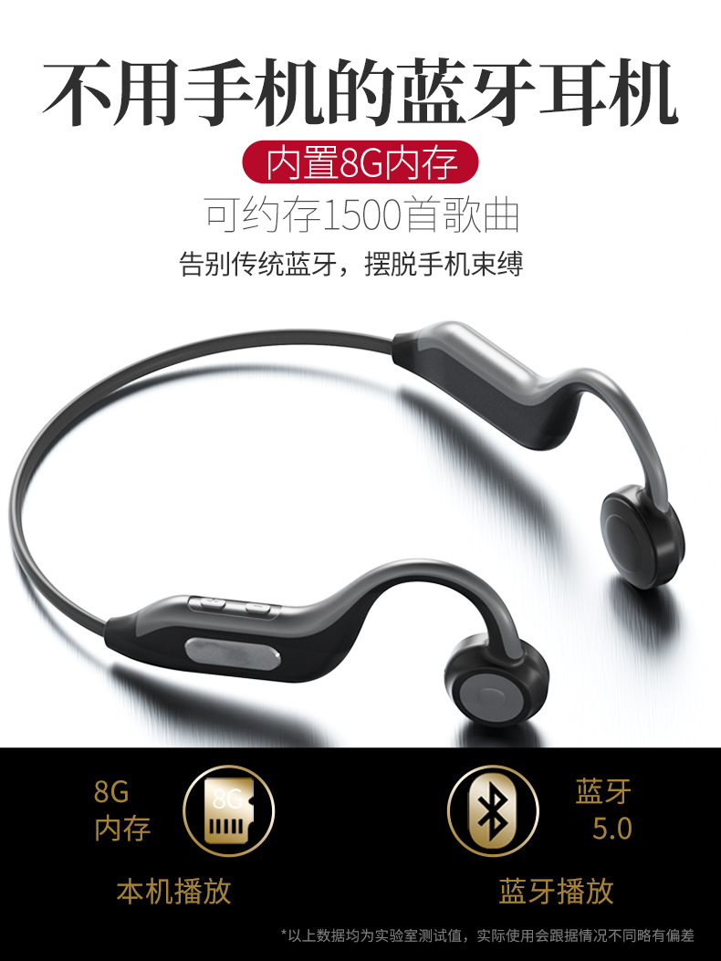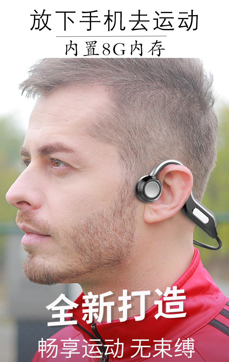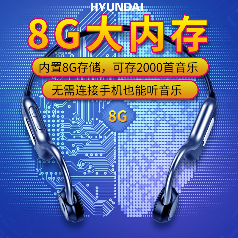 現代HYUNDAI-不入耳骨傳導無線掛耳式藍牙耳機 B1(帶8G內存)