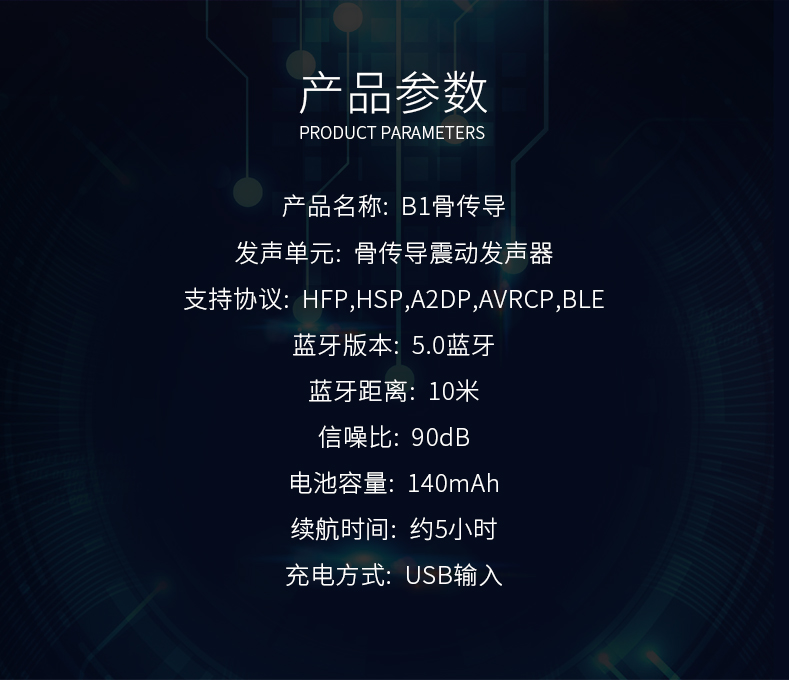 電池容量:140mAh 播放時間:5-6h 充電設備:USB