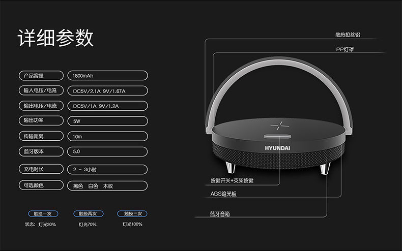 產品品牌:HYUNDAI產品型號:YH-C009顏 色:白色/木紋色產品材質:ABS