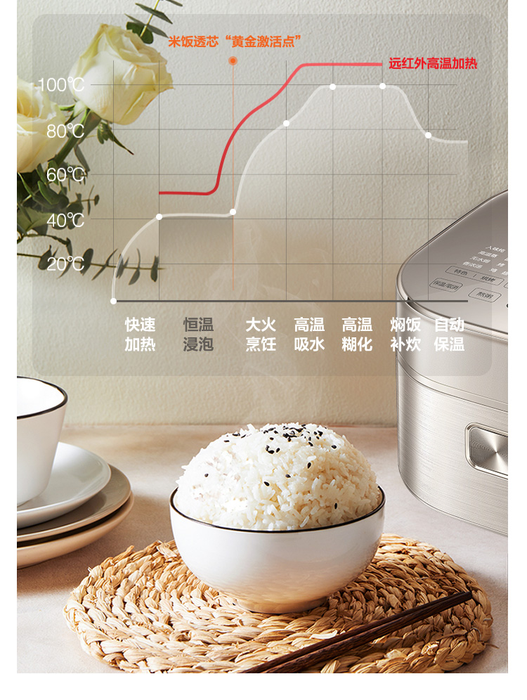 蘇泊爾(SUPOR)4L電飯煲遠紅外穿透加熱技術本釜IH電磁加熱多功能家用智能電飯煲SF40HC88