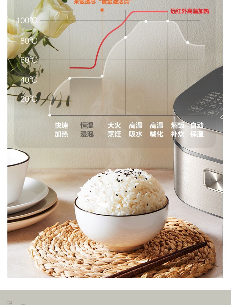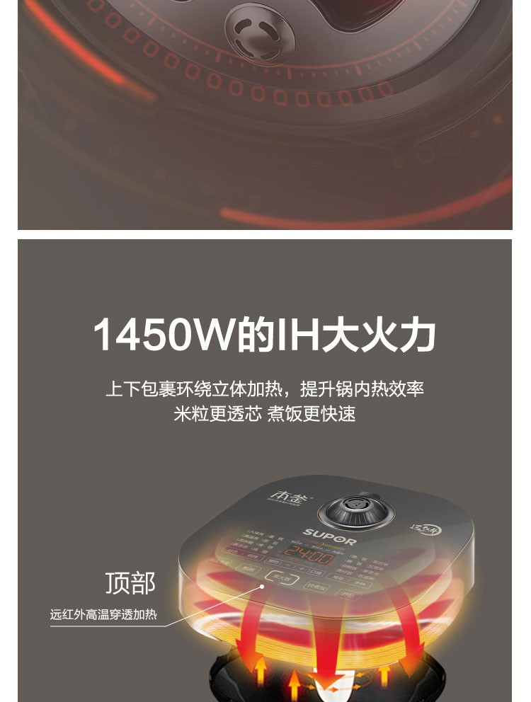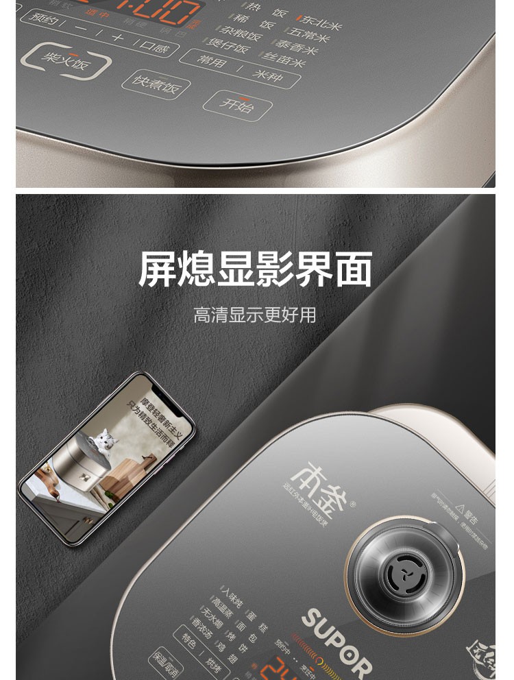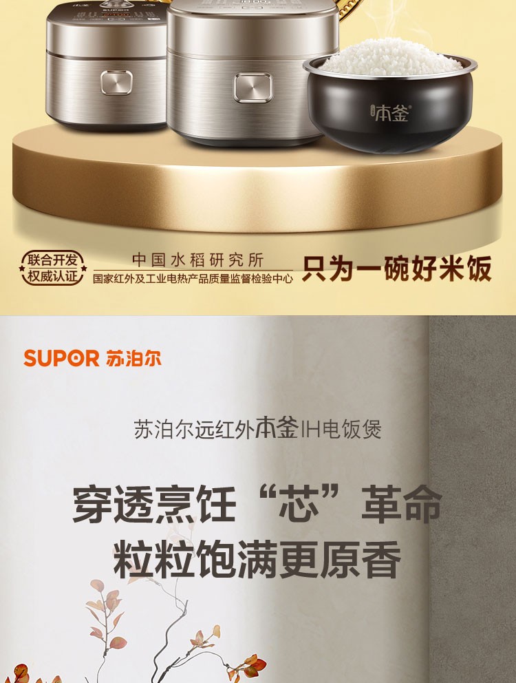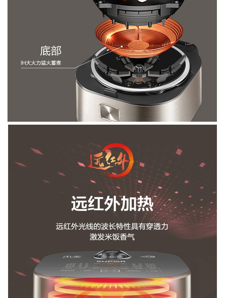 蘇泊爾(SUPOR) 電飯煲 遠紅外加熱IH本釜內膽 電飯鍋4L智能預約家用煮飯鍋 一鍵柴火飯 SF40HC81