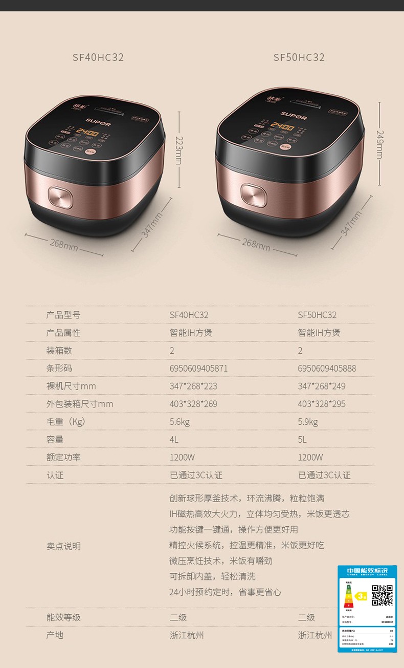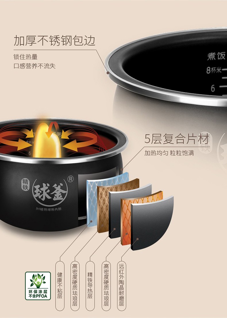 蘇泊爾(SUPOR)電飯煲 電飯鍋家用4L精鐵球釜IH電磁加熱 SF50HC32