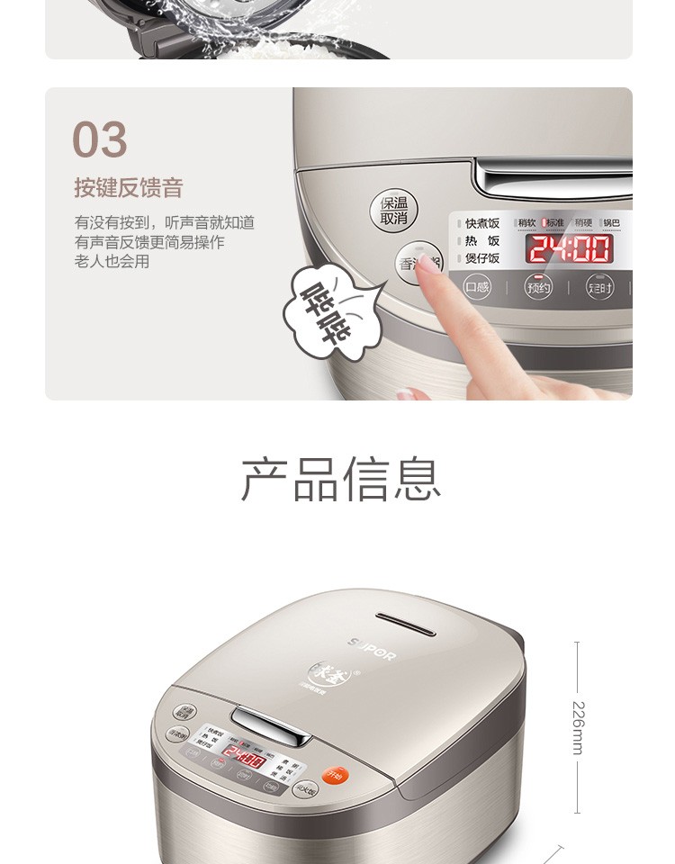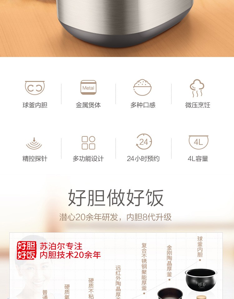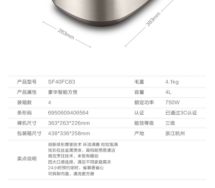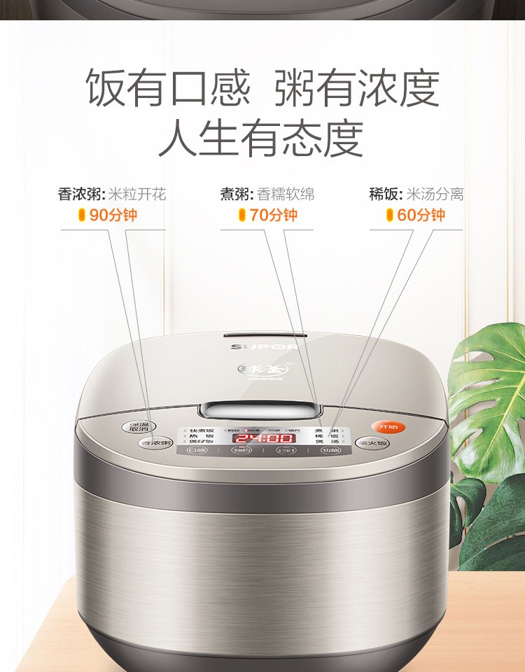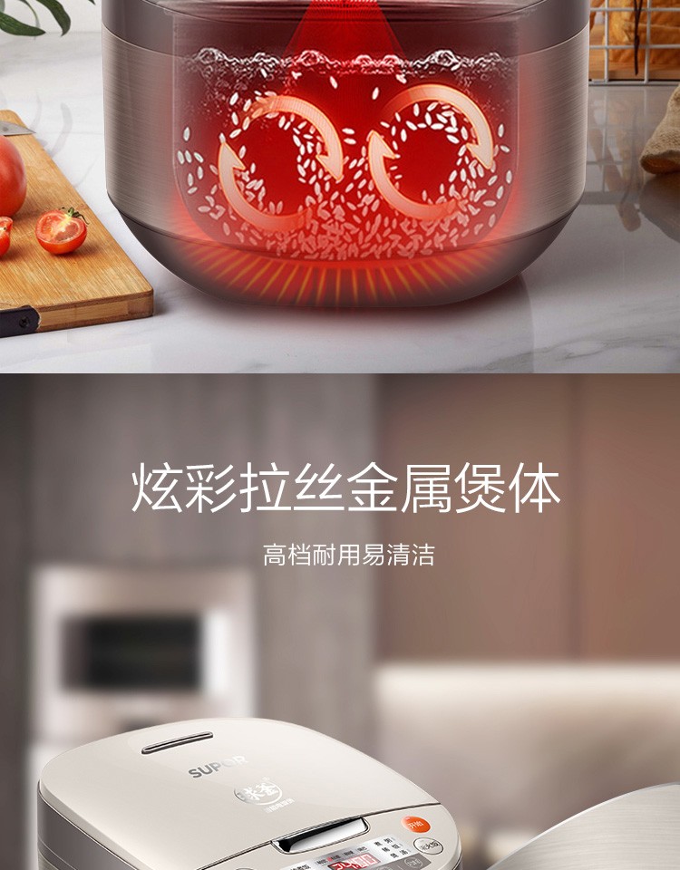 蘇泊爾(SUPOR)電飯煲 4L智能電飯煲 球形厚釜炫彩拉絲金屬煲體 SF40FC83