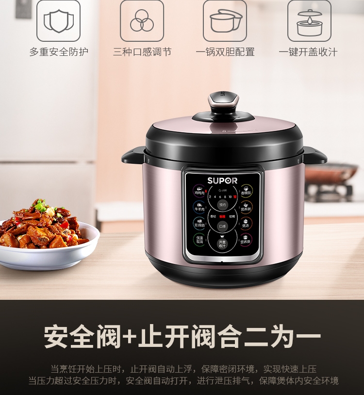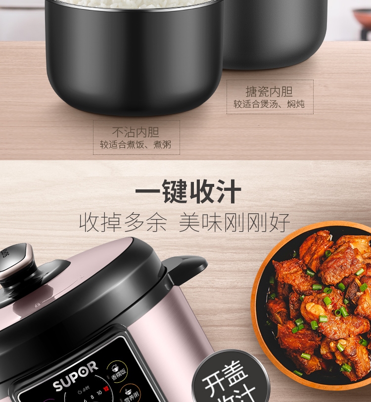 蘇泊爾(SUPOR)電壓力鍋 智能預約 一鍋雙膽 5L\/6L大容量一鍵開蓋收汁 三種口感調節高壓鍋 SY-50YC15