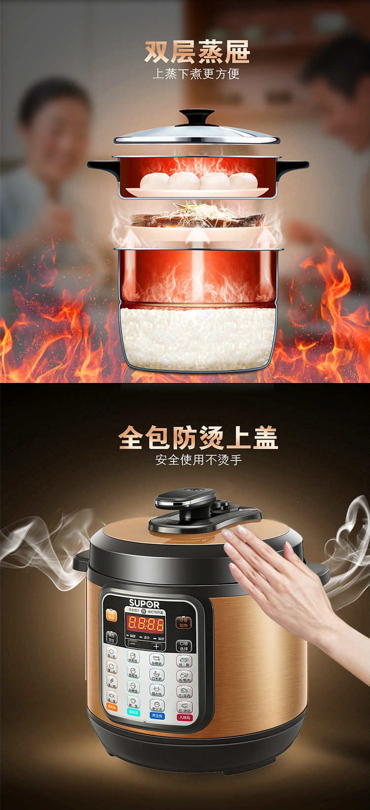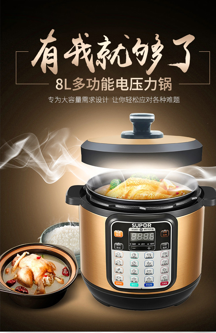 蘇泊爾(SUPOR) 大容量電壓力鍋大號電高壓鍋8升蒸煮多用鍋 24小時預(yù)約 80YC10C