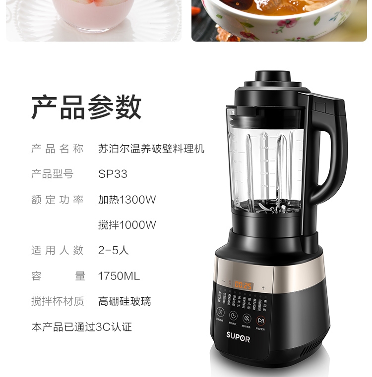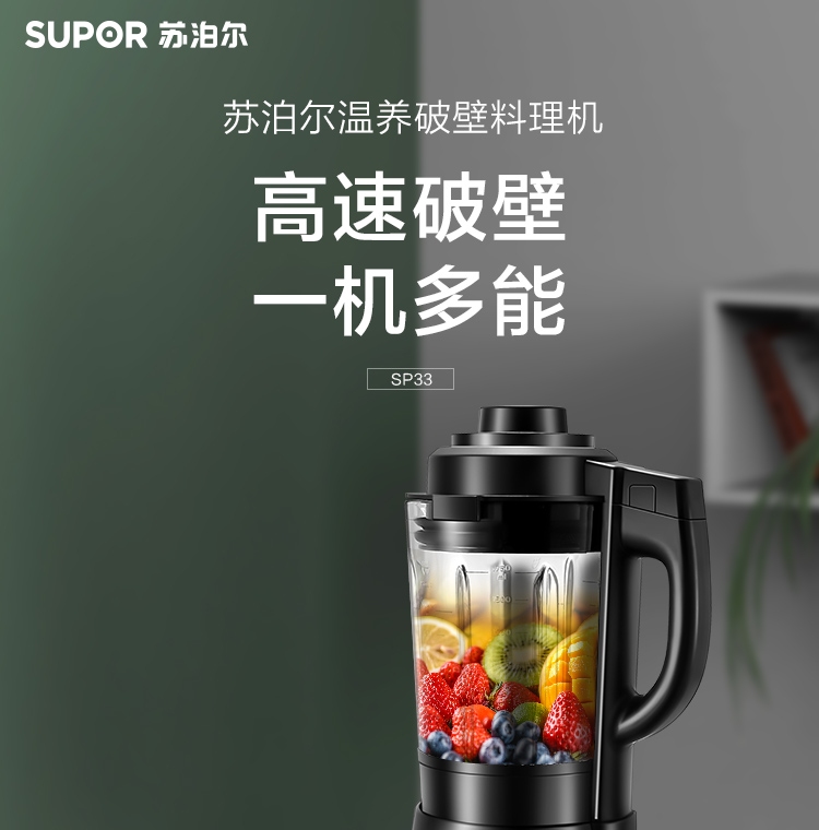 蘇泊爾( SUPOR)破壁機多功能家用豆漿機加熱破壁料理機攪拌機輔食機榨汁機絞肉機 SP33