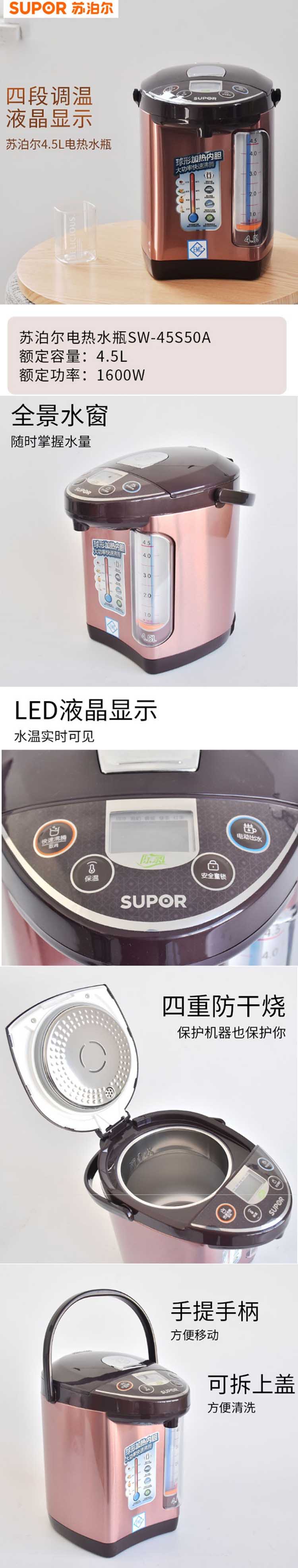 蘇泊爾(SUPOR)SW-45S50A 電水壺電熱水壺多功能家用電熱水瓶四段調(diào)溫全景水窗安全防干燒雙層防燙液晶顯溫