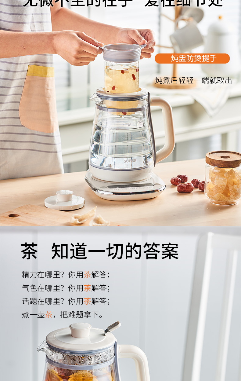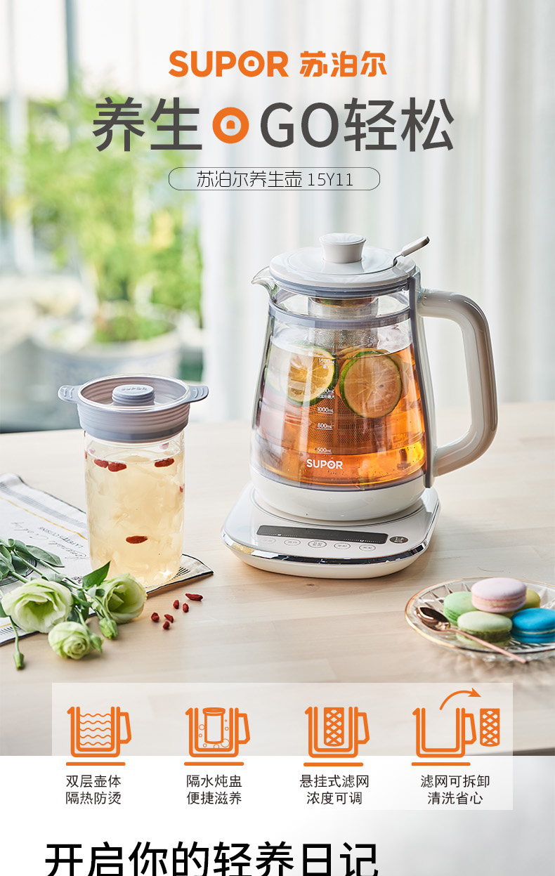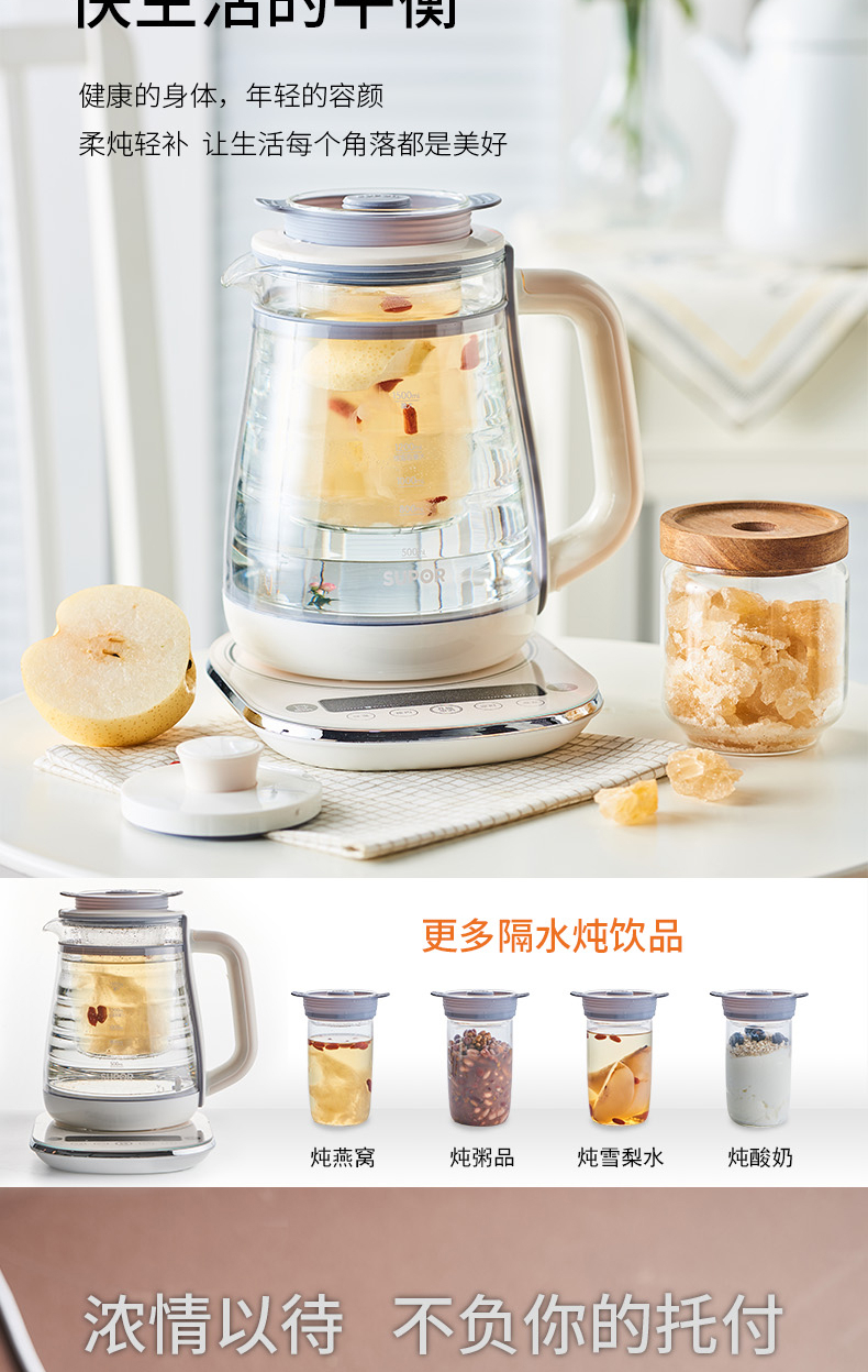 蘇泊爾(SUPOR) SW-15Y11 1.5L 雙層壺體 防燙保溫 養(yǎng)生壺 隔水燉盅