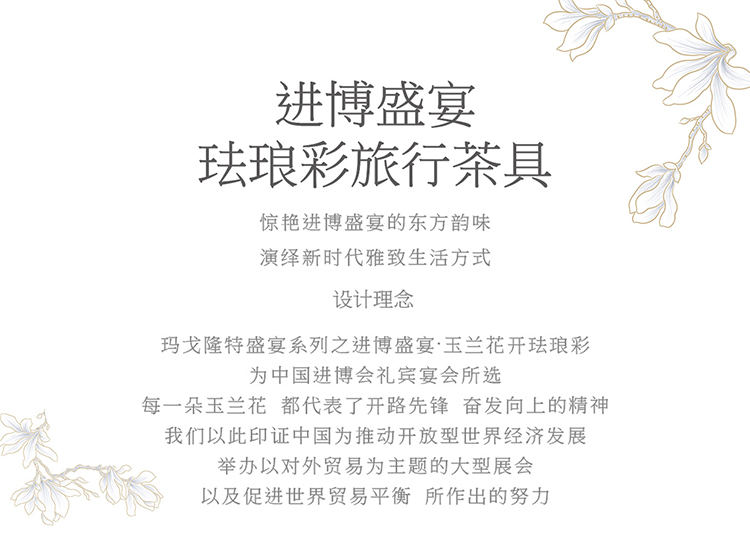 瑪戈隆特 4頭進博旅行茶具進博玉蘭-黃金琺瑯彩