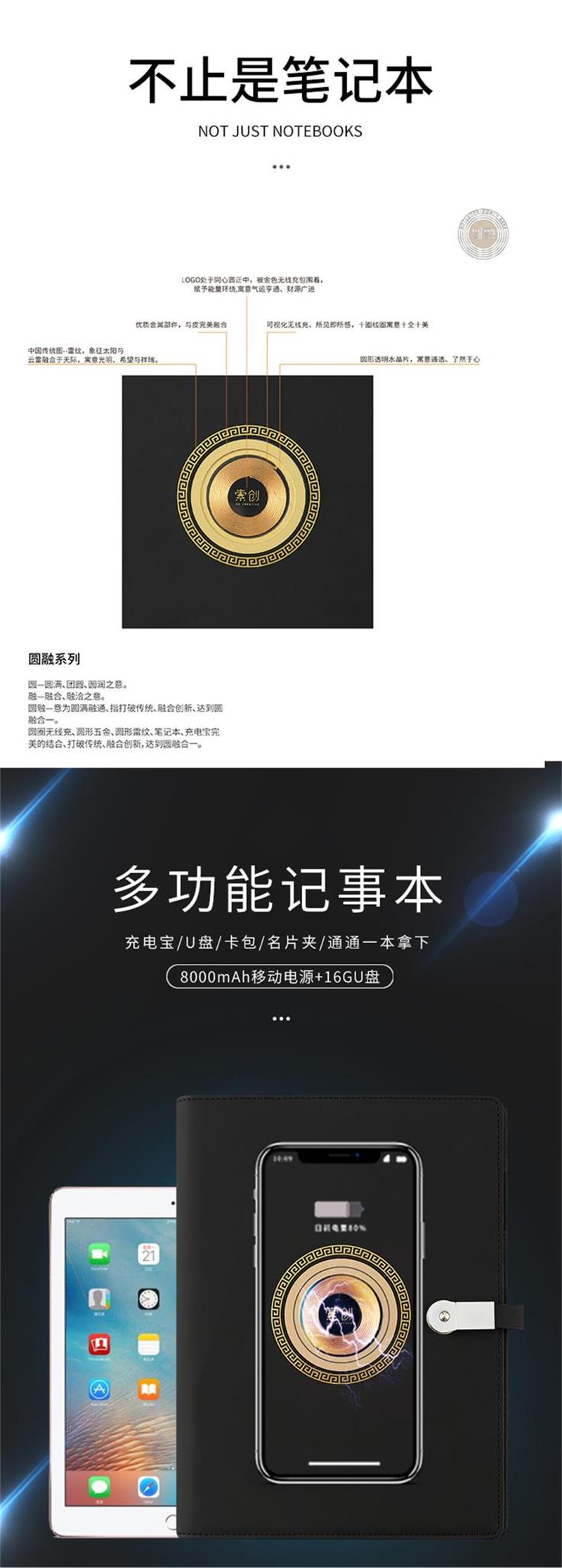 圓融系列充電筆記本U盤+有線+無線+筆記本