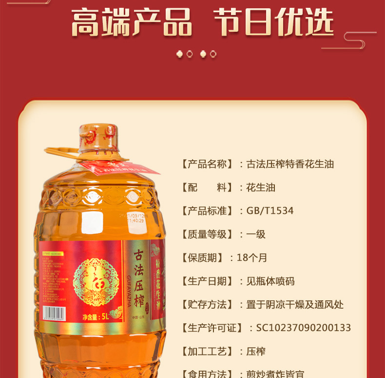 魯王古法壓榨特香花生油5L