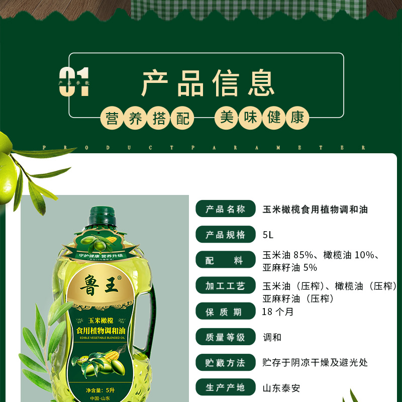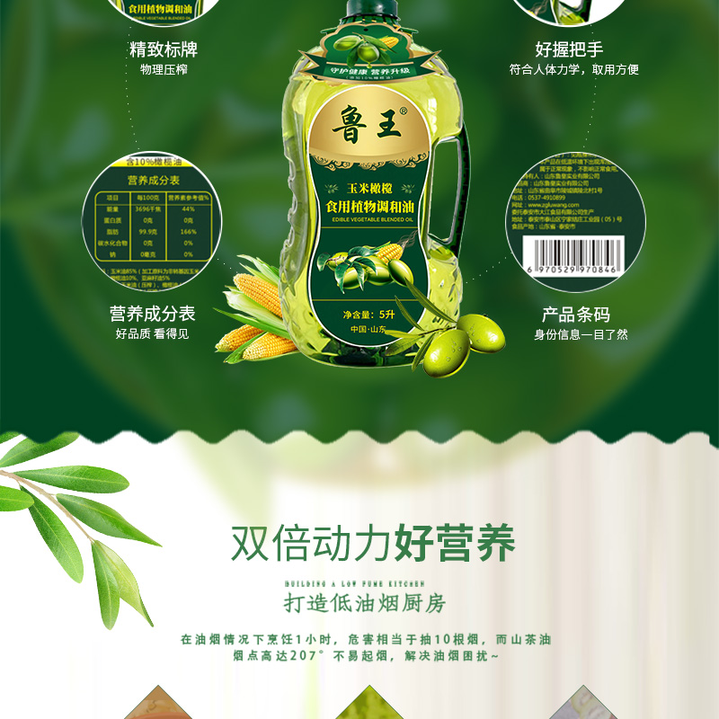 魯王玉米橄欖食用植物調和油5L