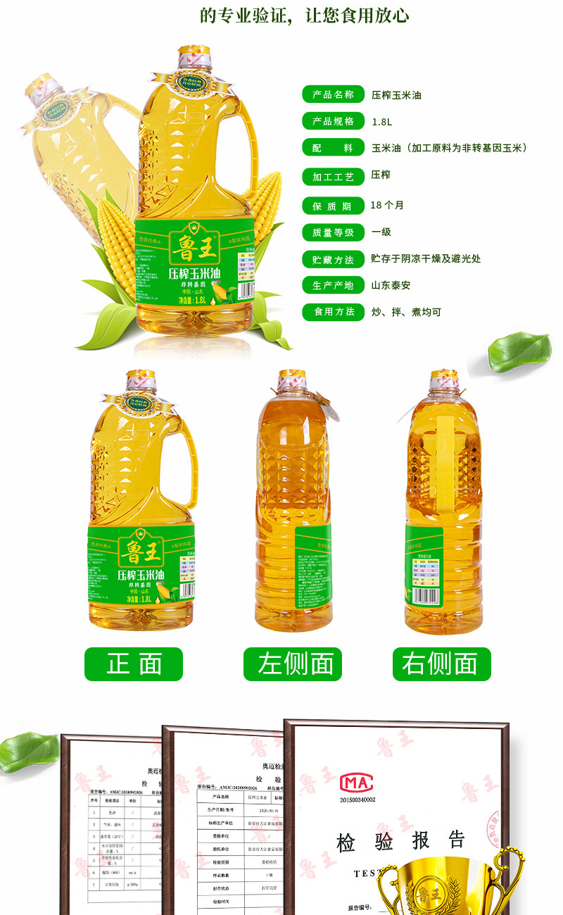 魯王綠色健康壓榨玉米油1.8L*2