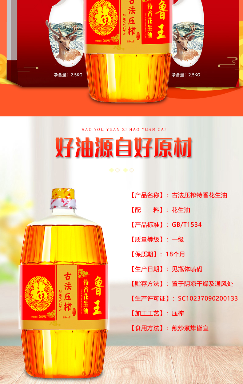 魯王古法特香花生油960ml +谷王公社五常稻香米2.5kg*2