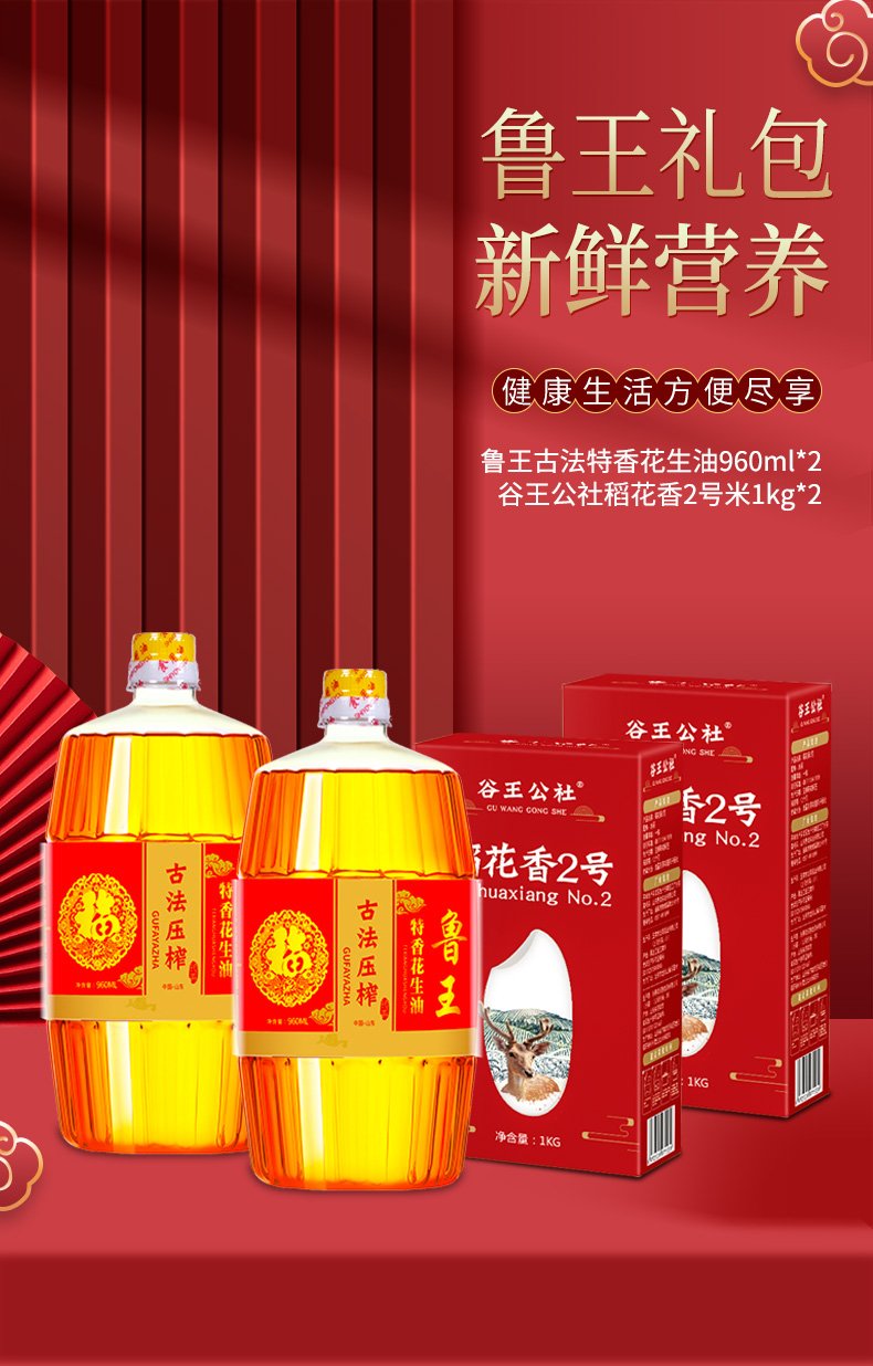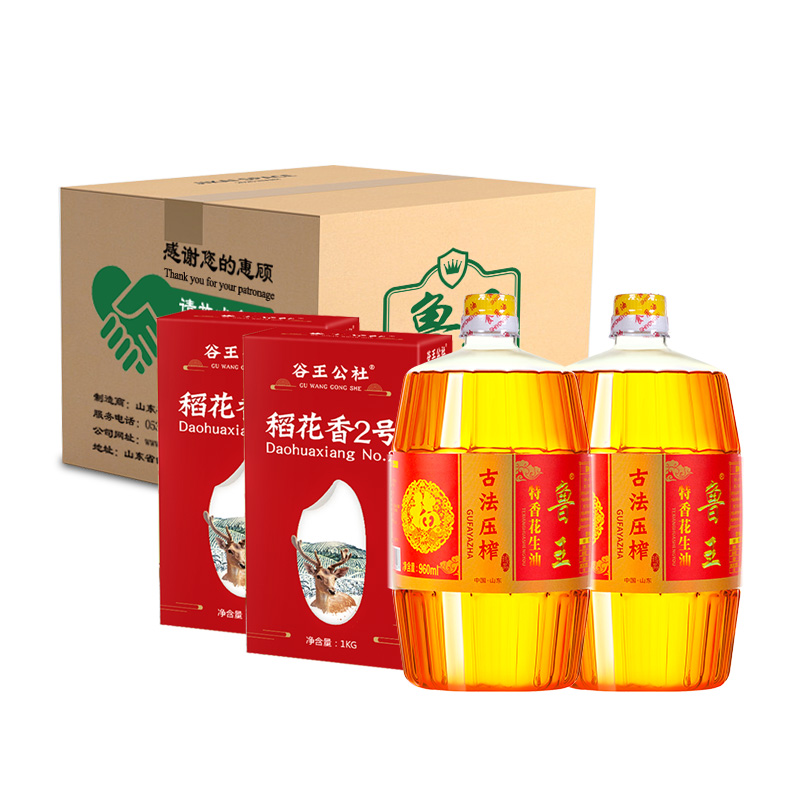 魯王古法特香花生油960ml*2+谷王公社稻花香2號1kg*2