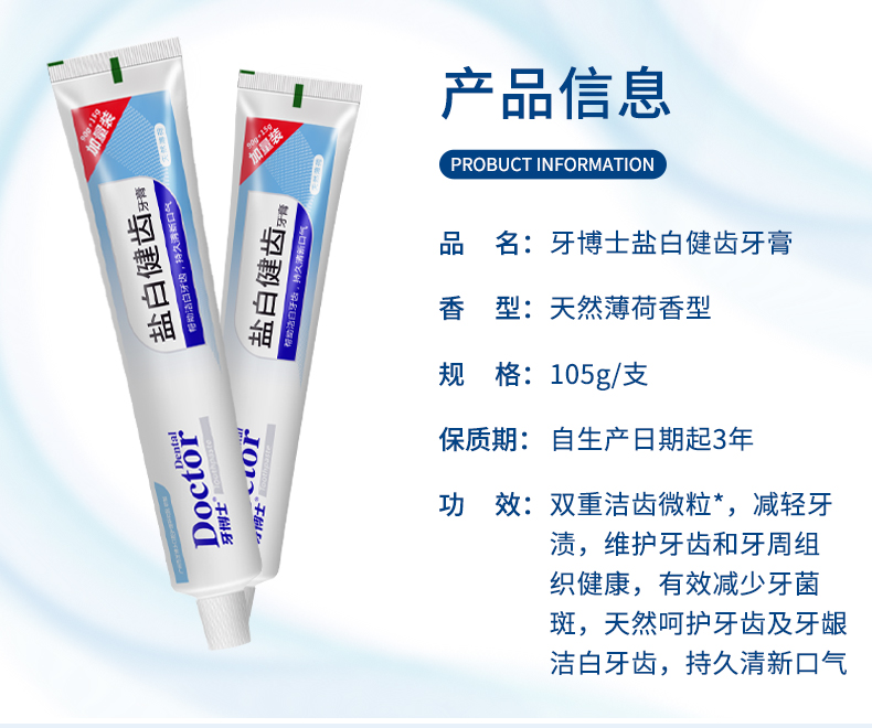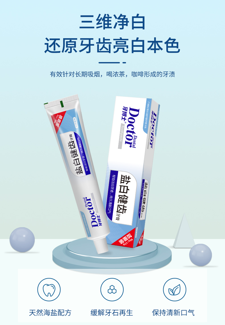 三維凈白,還原牙齒亮白本色,有效針對長期吸煙喝濃茶,咖啡形成的牙漬。天然海鹽配方,緩解牙石再生,保持清新口氣。