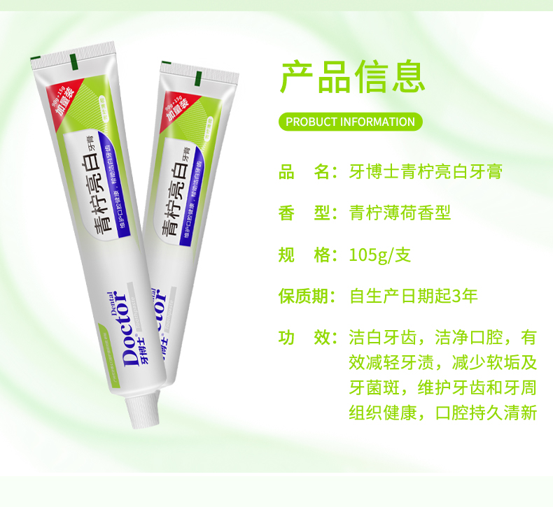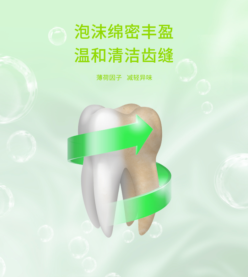 雙重潔齒微粒,減輕牙漬,維護牙齒和牙周組織健康,有效減少牙菌斑,調節口腔酸堿平衡,潔白牙齒,持久清新口氣。