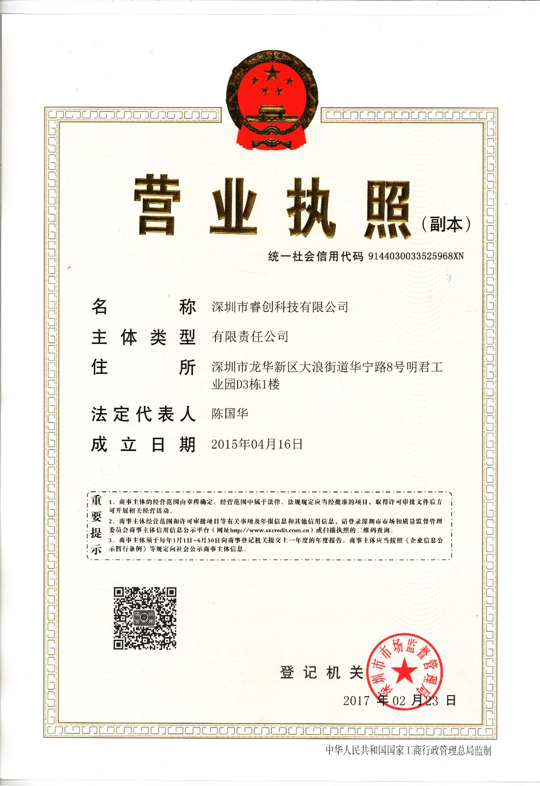 廣東省深圳市龍華新區深圳市龍華新區大浪街道華寧路8號明君工業園D3棟1樓
