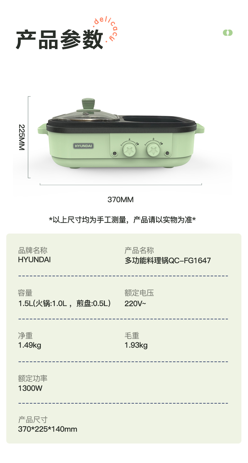 產(chǎn)品容量:1.5L(火鍋盤:1.0L ,煎盤:500ml)