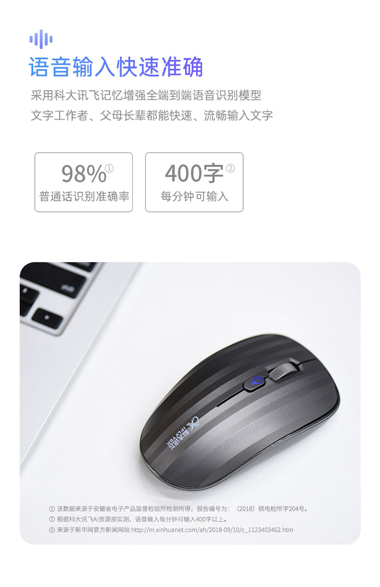 科大訊飛AI鼠標STD 語音鼠標無線鼠標家用鼠標辦公可充電聲控轉文字辦公 離線語音識別 科大訊飛AI鼠標STD