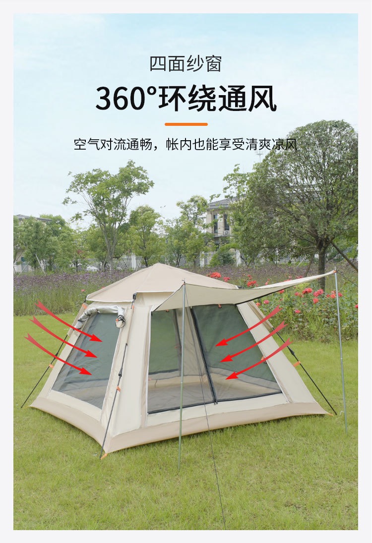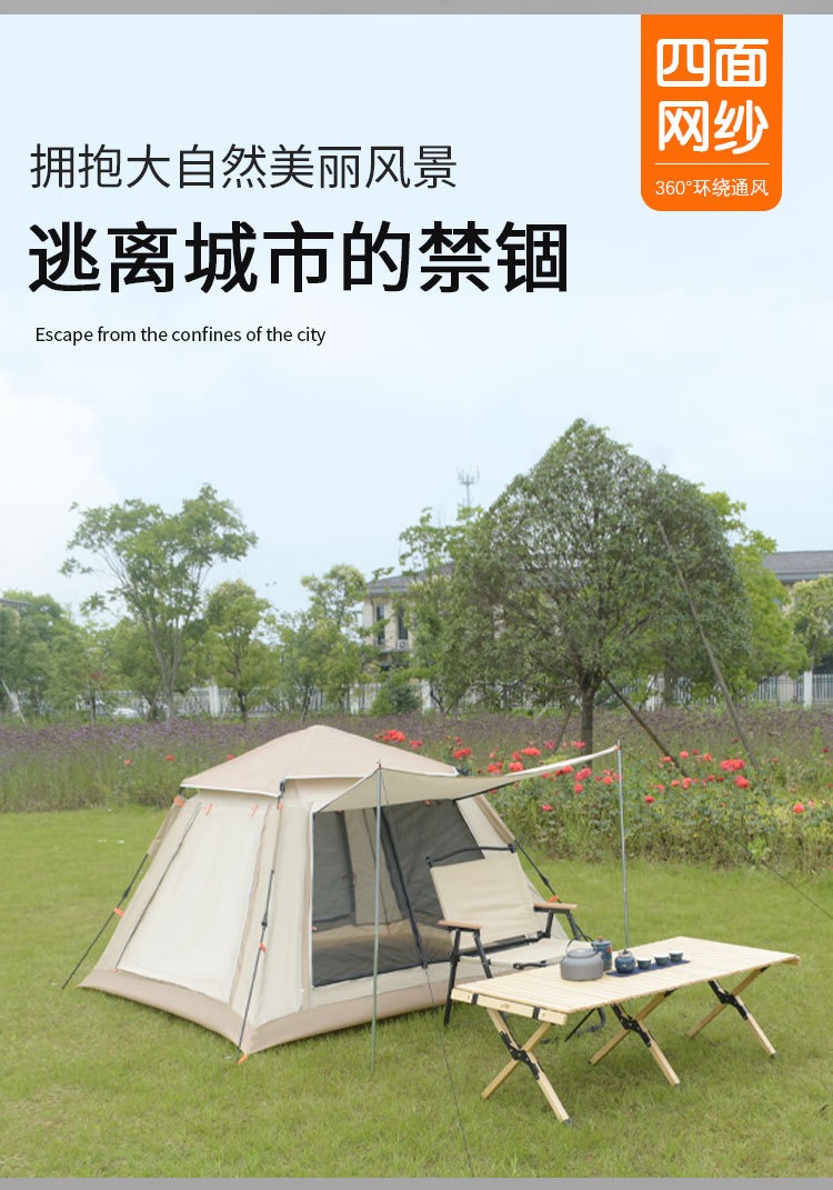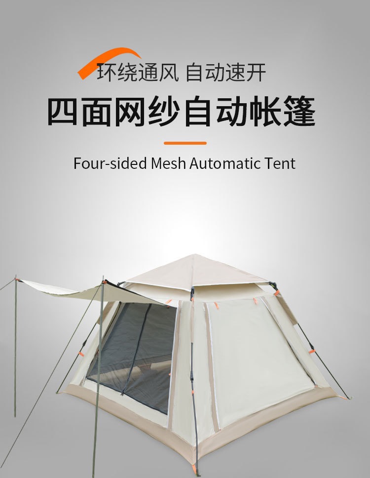 產品材質:190T滌綸,PU涂層, 防水2500mm壓膠貼條 內帳:190T滌綸 地席:210D牛津地席,PU涂層, 防水2500mm壓膠貼條 撐桿:全自動速彈玻璃鋼支架 特點:4人用,適用四季使用