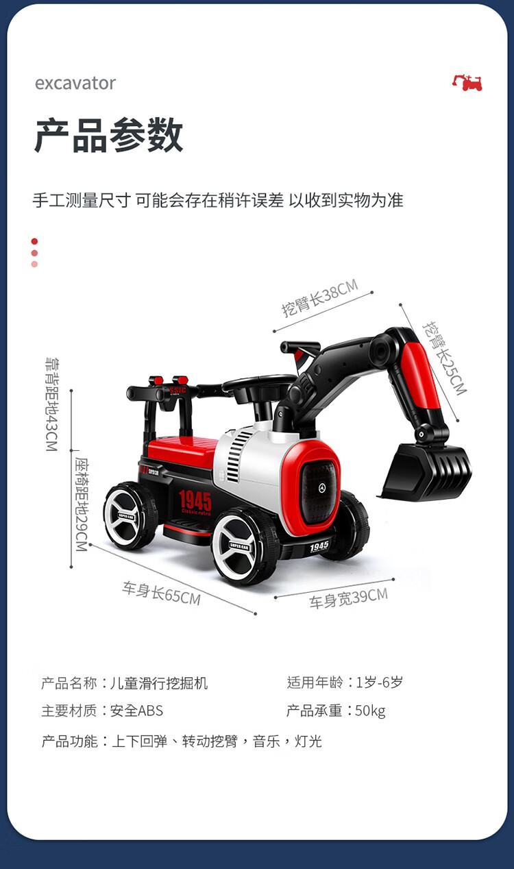 滑行款 手動(dòng)挖臂 音樂燈光,四輪防側(cè)翻,騎行玩耍穩(wěn)穩(wěn)的,低重心穩(wěn)固結(jié)構(gòu)寶寶玩耍更平穩(wěn)防側(cè)翻,安全舒適座椅靠背