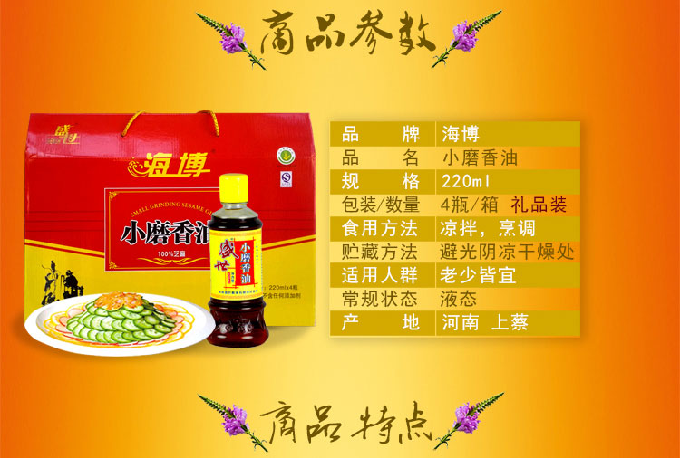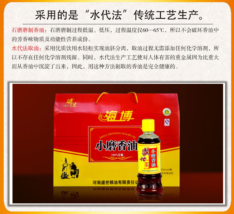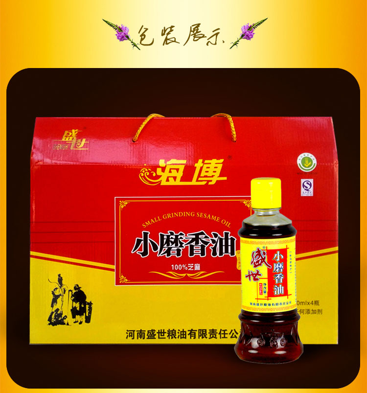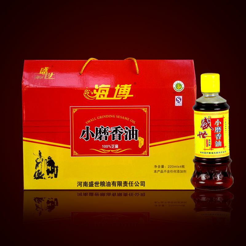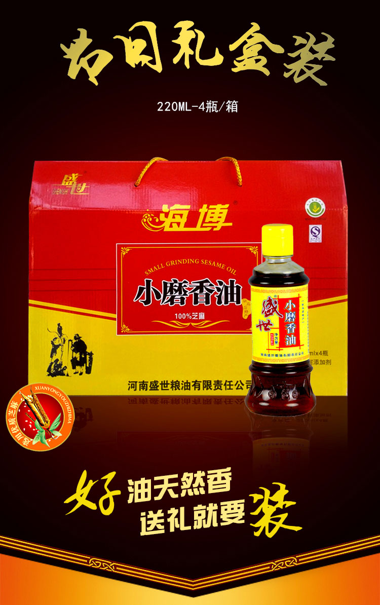 盛世河南特產(chǎn)石磨香油純白芝麻油小磨油 月子油220ml*4瓶禮盒裝