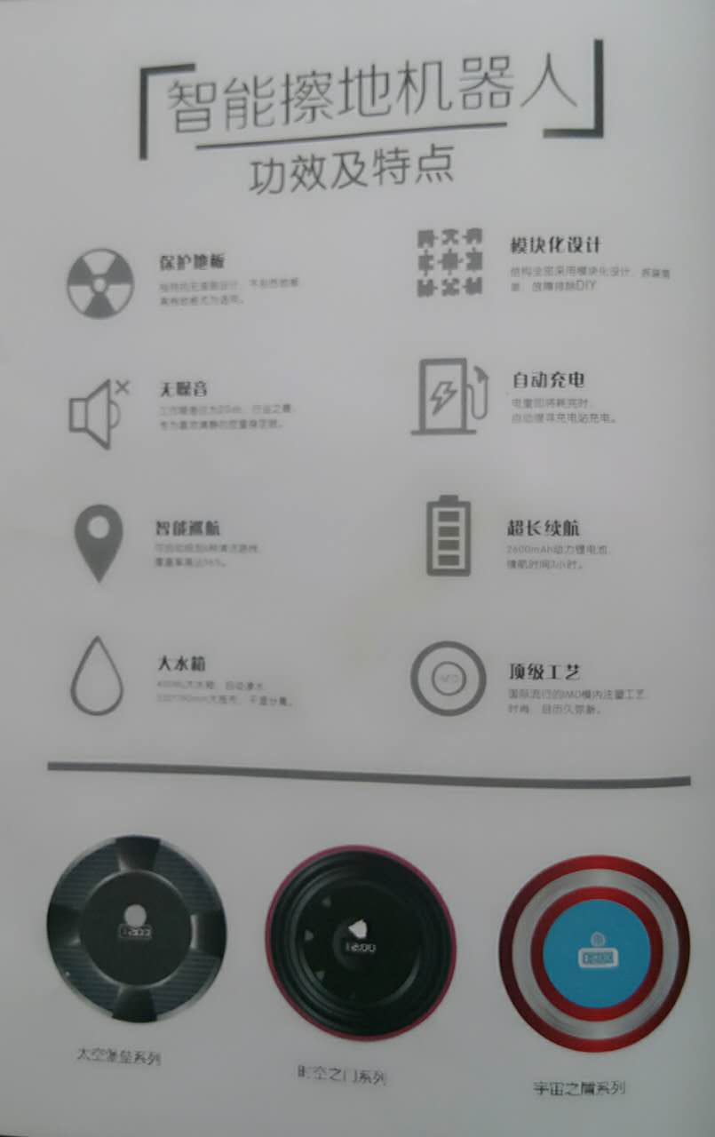 這款產(chǎn)品是最新上市的新款產(chǎn)品,主要功能是拖地。內(nèi)置有大水箱,可以裝水,自動(dòng)加濕拖的更干凈。重量輕,有安裝陀螺儀防倒,防撞系統(tǒng)再提升一個(gè)檔次。超低音。有弓字型路線覆蓋率可以達(dá)到98%。隨時(shí)可以更換抹布,更清潔,更健康。愛(ài)家從家庭環(huán)境開(kāi)始,提高家庭環(huán)境衛(wèi)生的清潔你最好的選擇是感應(yīng)智能擦地機(jī)。。。