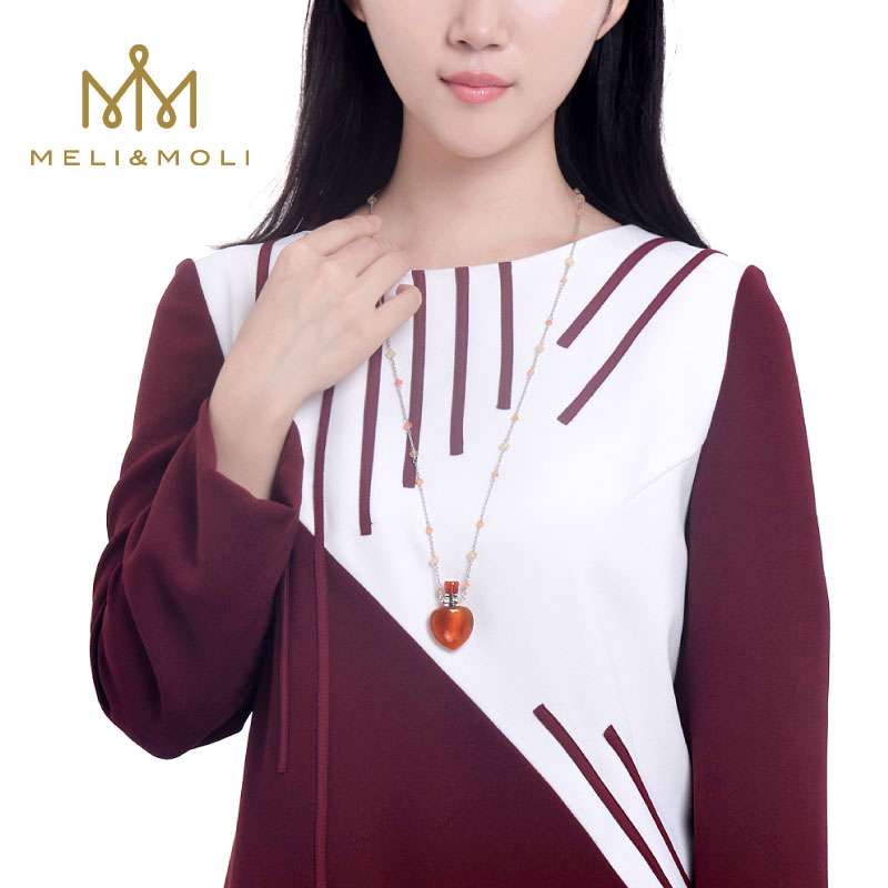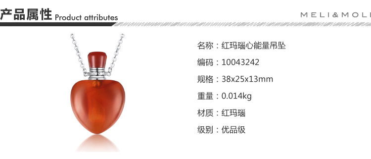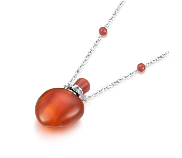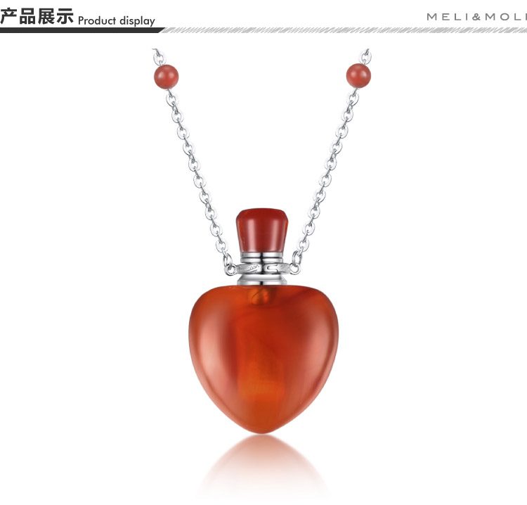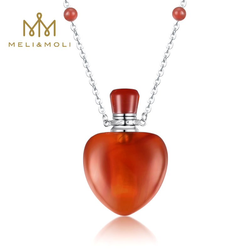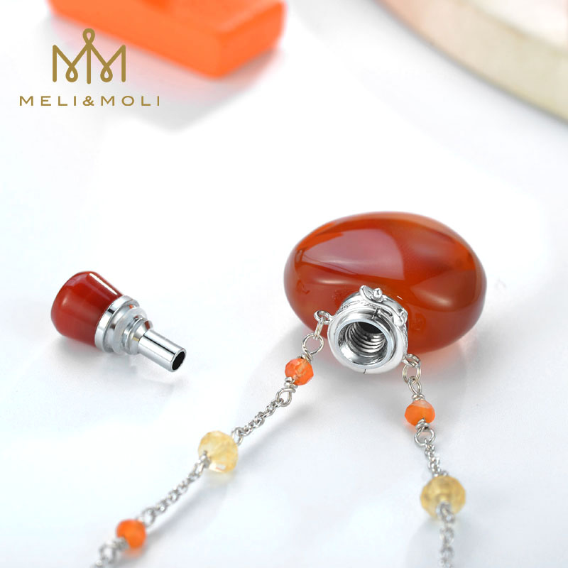 MELI MOLI天然紅瑪瑙精油瓶吊墜 香氛香水瓶S925銀項鏈 括香芳療保健飾品