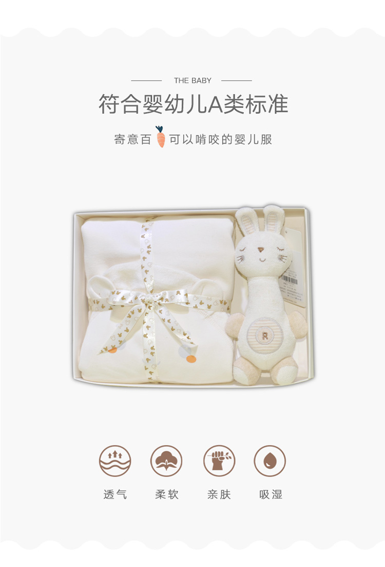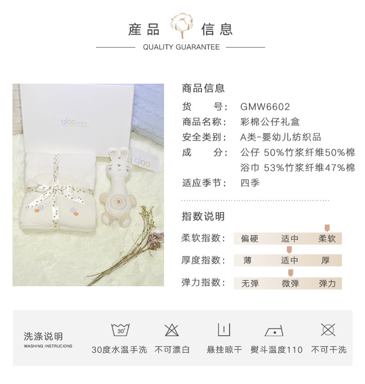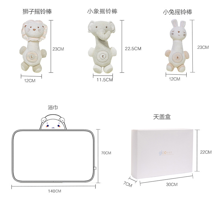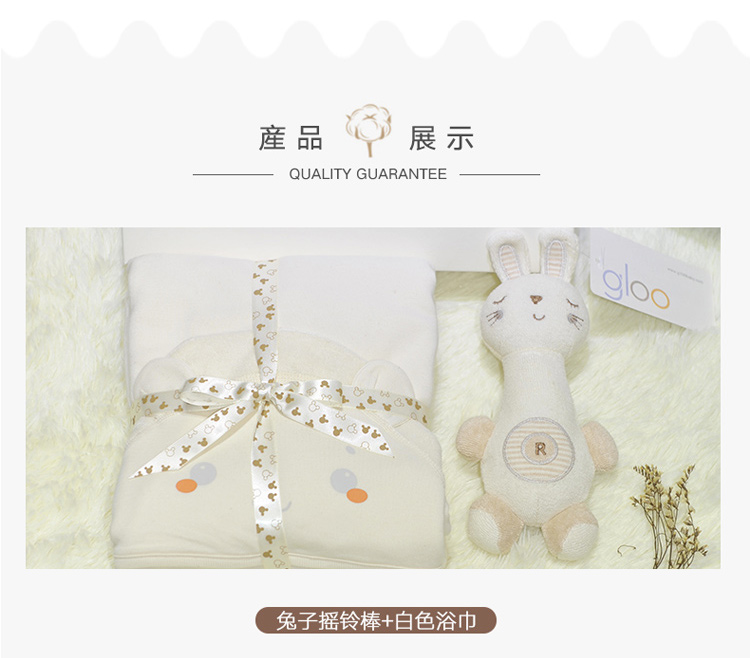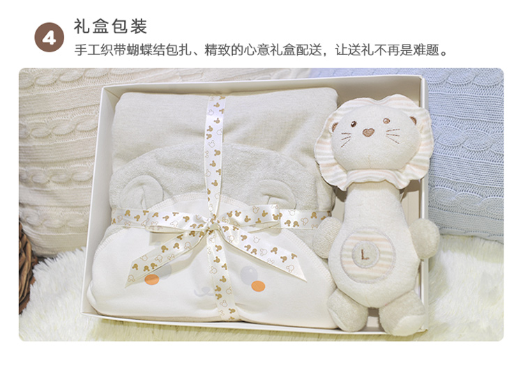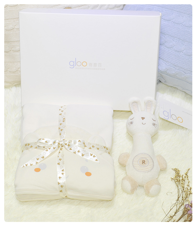 G100寄意百嬰兒童趣禮盒新生兒浴巾天然彩棉搖鈴公仔心意禮盒