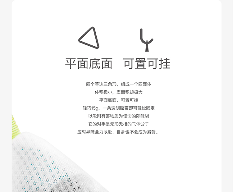 1消除甲醛:消除室內空氣中的甲醛、苯、TVOC等有害物質 2、凈化空氣:獨有的分子篩自然過濾凈化空氣 :3殺菌消毒:抑制黃色葡萄球菌及大腸桿菌 4、除臭去味:獨有天然納米除臭材料自然去除各種甲醛異味 5、防螨除虱:對螨蟲,壁虱等寄生蟲具有較強抑 舉報 極有家認證[原創設計]:專屬設計,限量生產,只為你造 商家承諾:提供“送貨入戶”服務,如未履行服務最高可獲得200元賠付