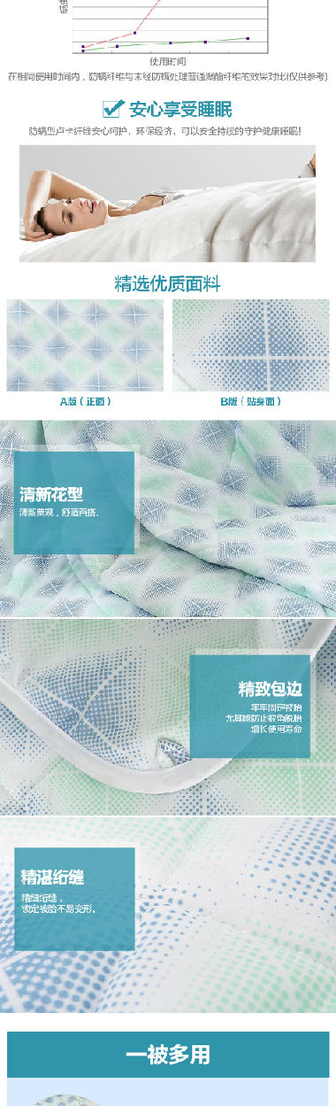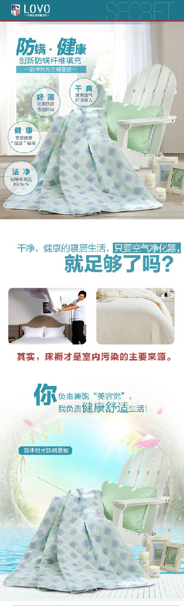 夏日睡眠追求被薄不壓身,一夜清爽舒暢,故一條舒適的夏被,應偏輕薄同時兼具透氣親膚性能,在炎炎夏日給您帶來舒爽睡眠感受。