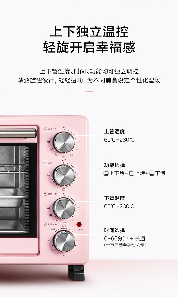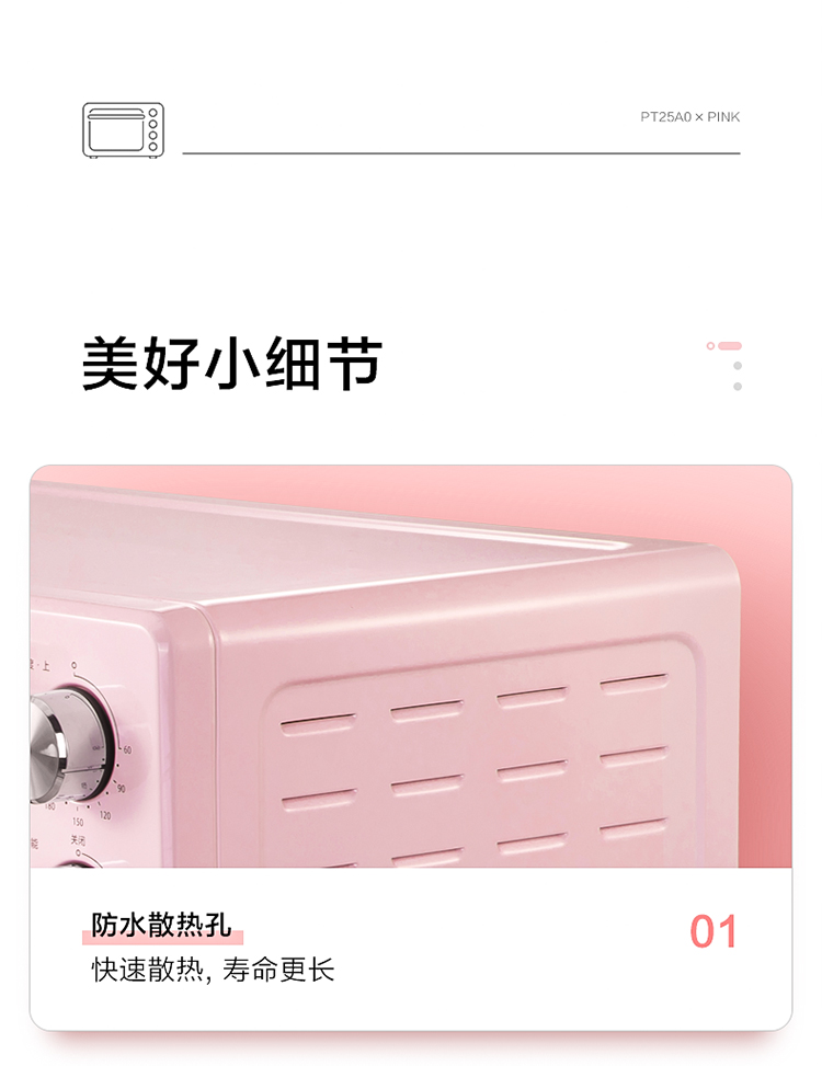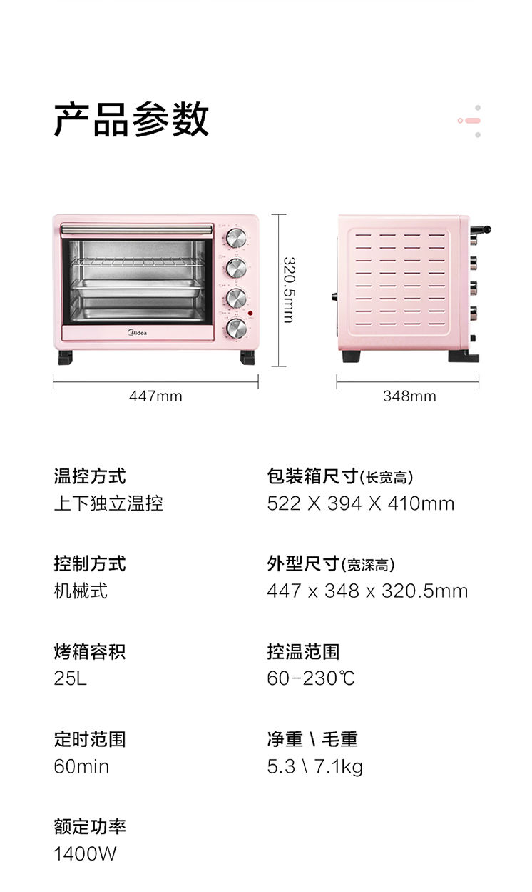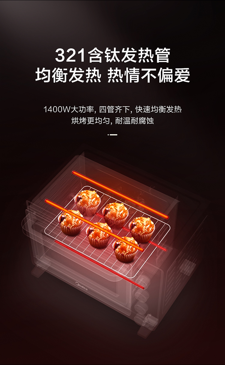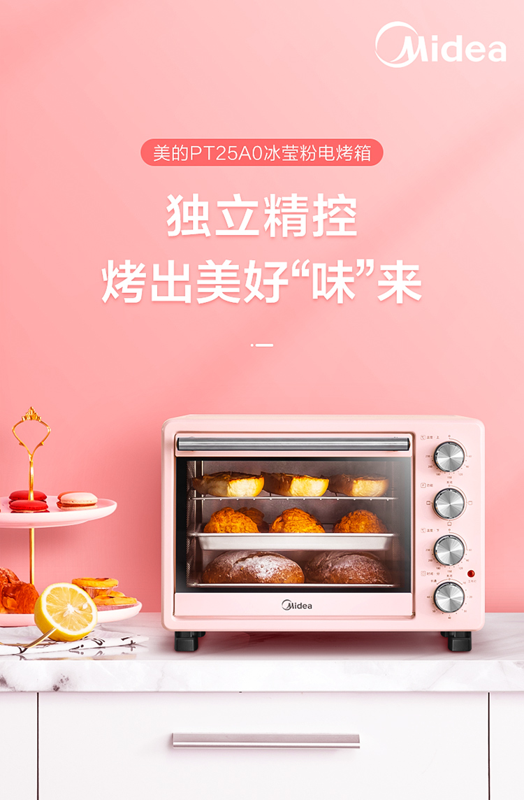 美的(Midea)PT25A0 家用多功能電烤箱 25升 上下獨立控溫 含鈦加熱管