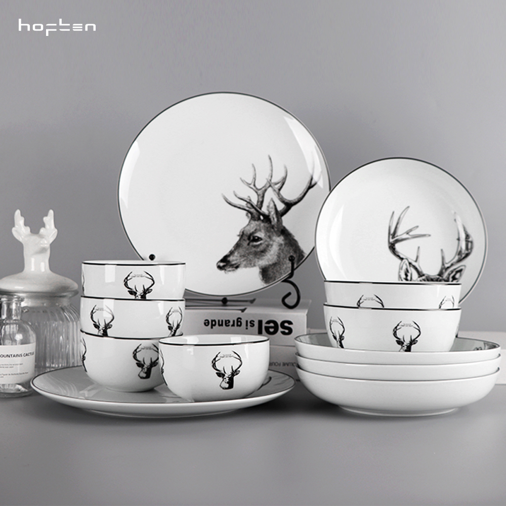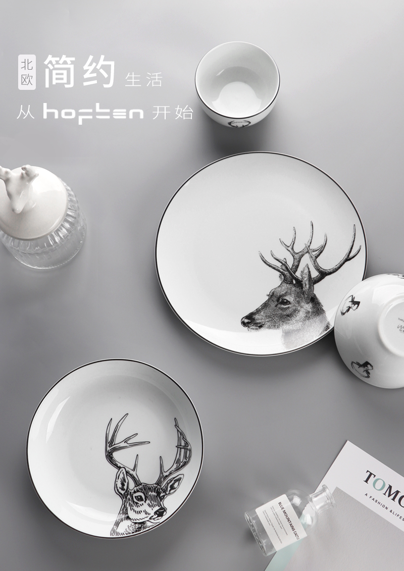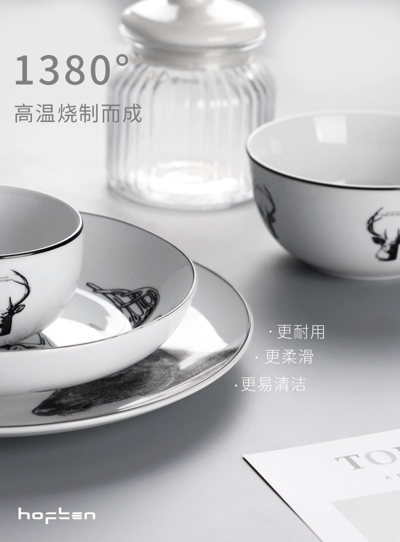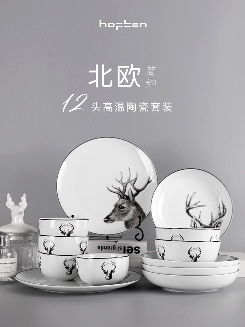 北歐簡約HOFTEN赫芬陶瓷餐具套裝12頭高溫送禮家用四口碗盤碟組合