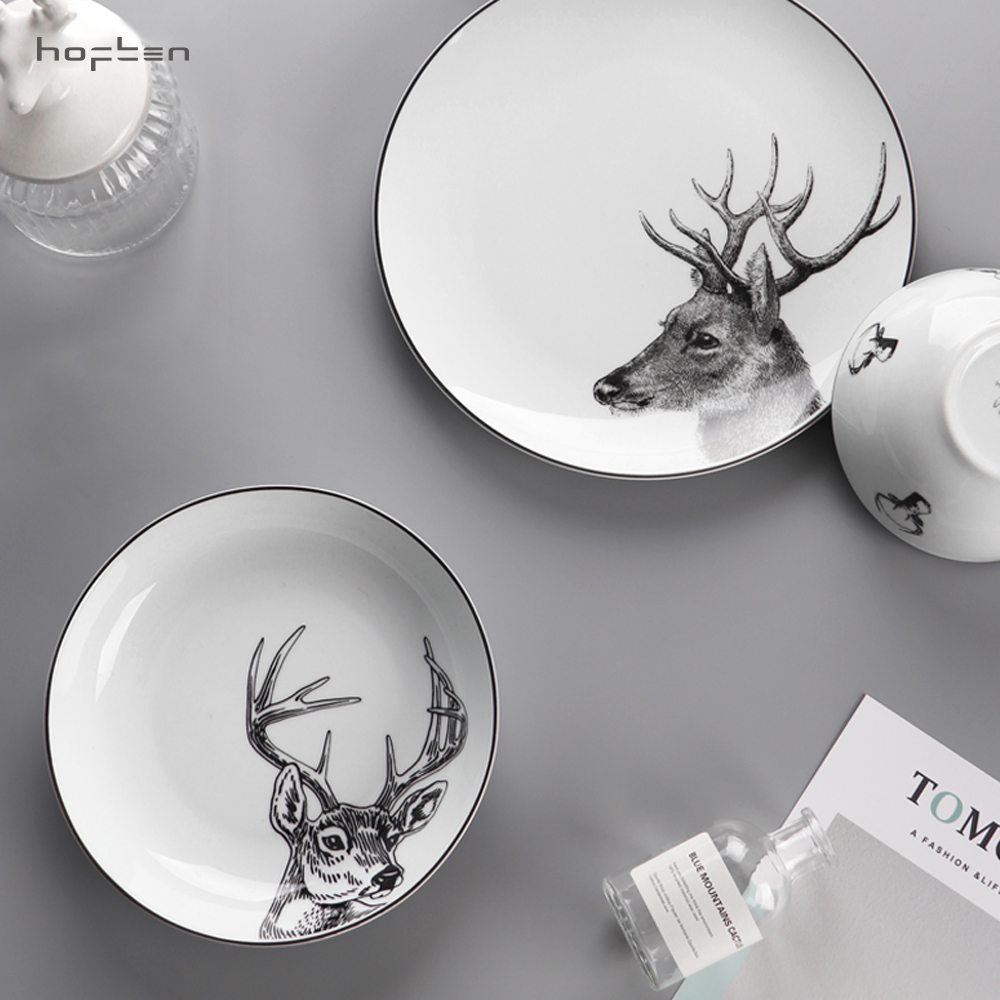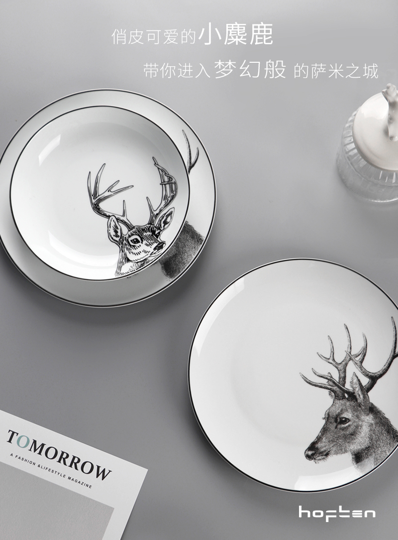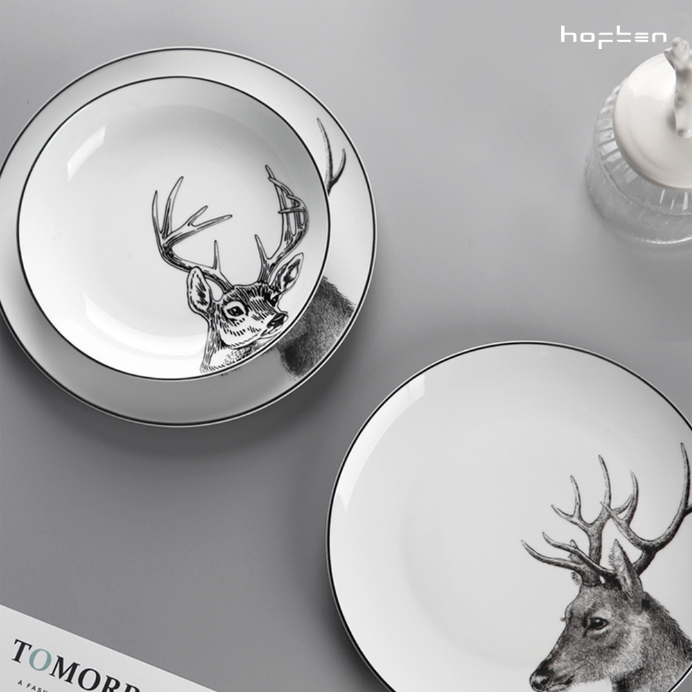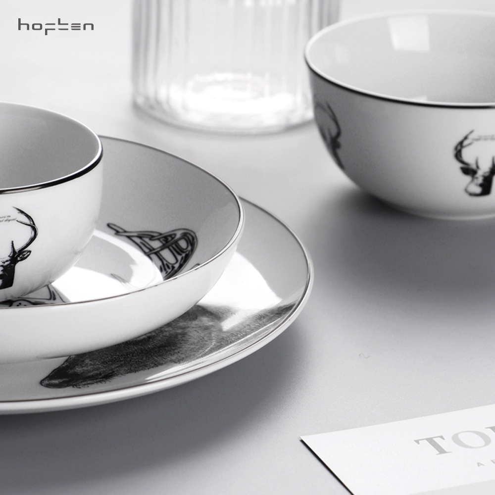 北歐簡約HOFTEN赫芬陶瓷餐具套裝12頭高溫送禮家用四口碗盤碟組合
