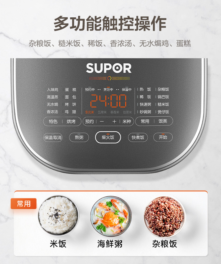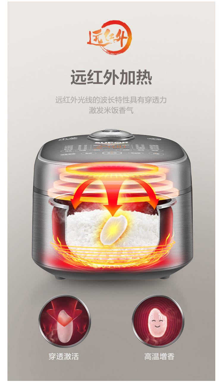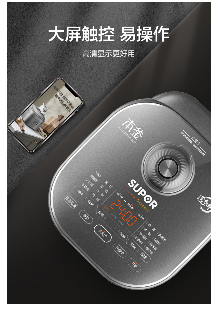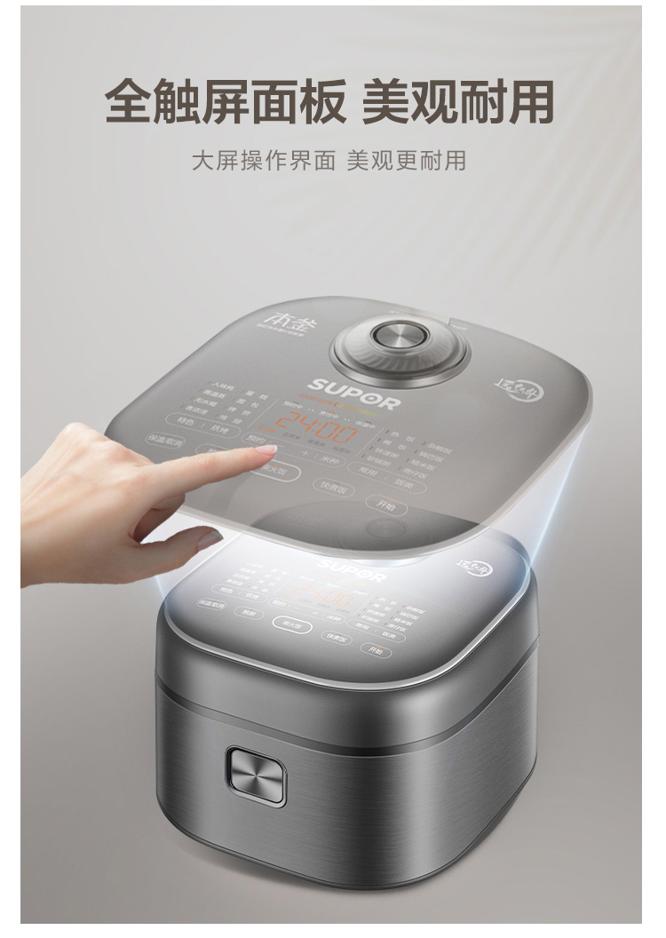 蘇泊爾(SUPOR) 電飯煲 4L 遠紅外本釜IH電飯鍋 多功能家用智能菜單 純觸控全面屏 深空灰色 SF40HC86
