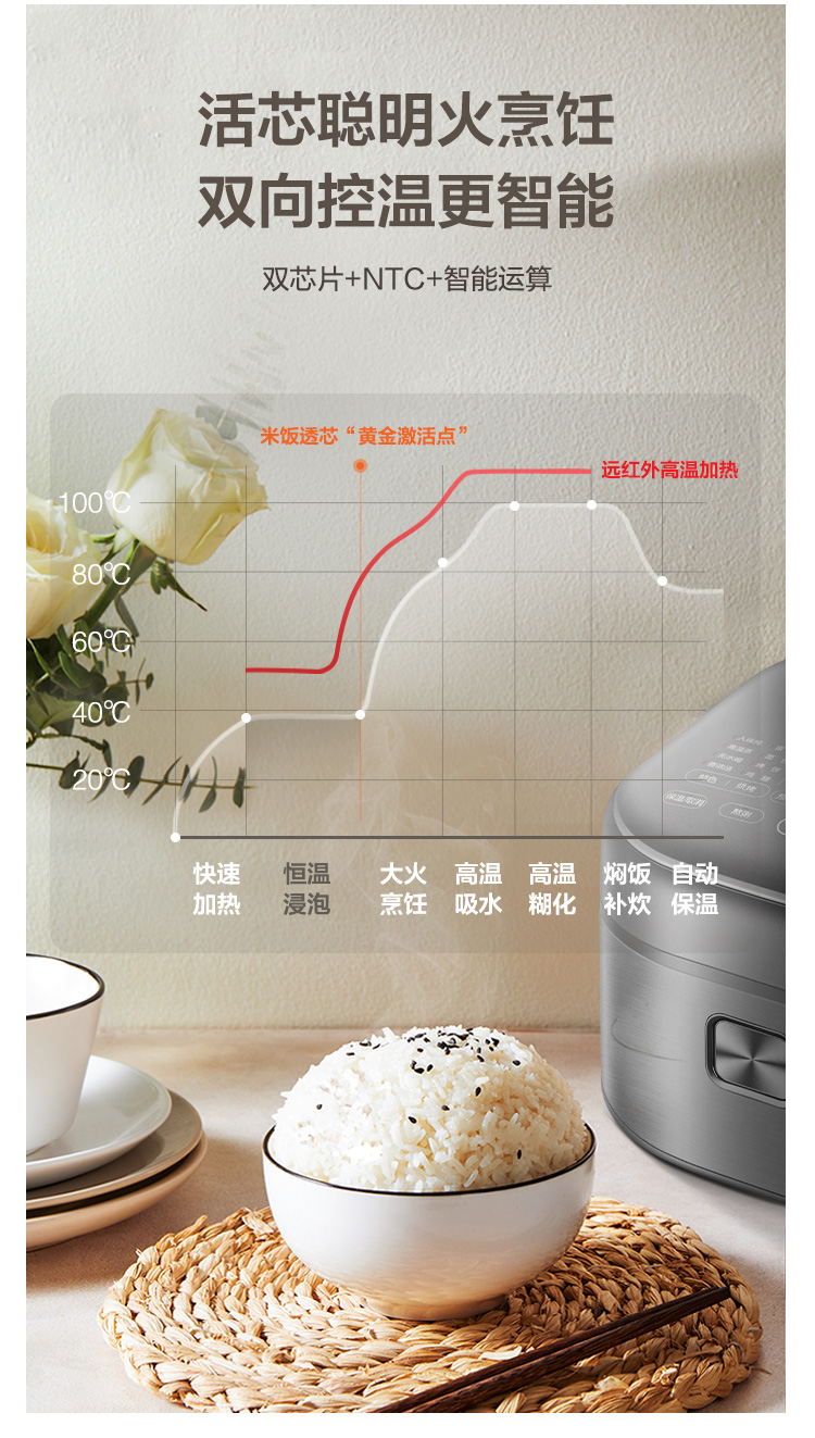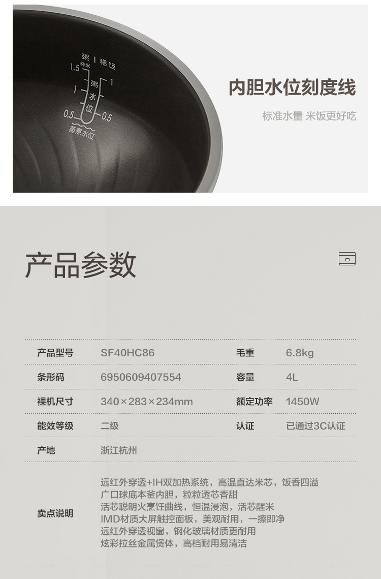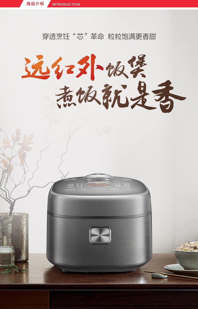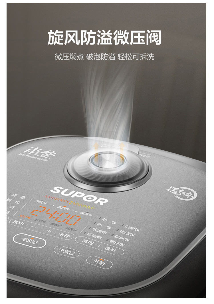 蘇泊爾(SUPOR) 電飯煲 4L 遠紅外本釜IH電飯鍋 多功能家用智能菜單 純觸控全面屏 深空灰色 SF40HC86