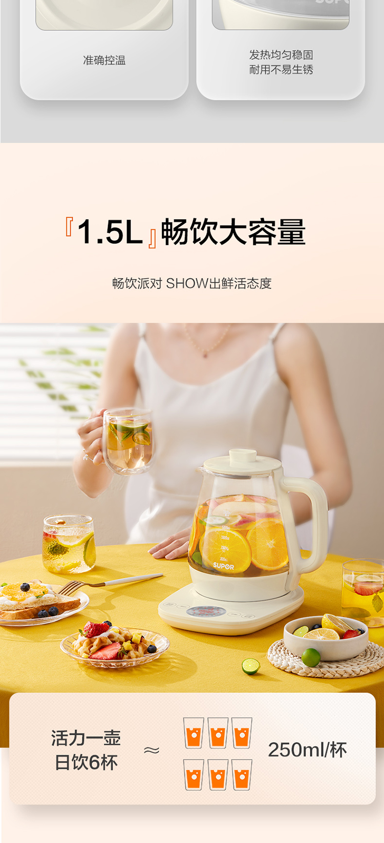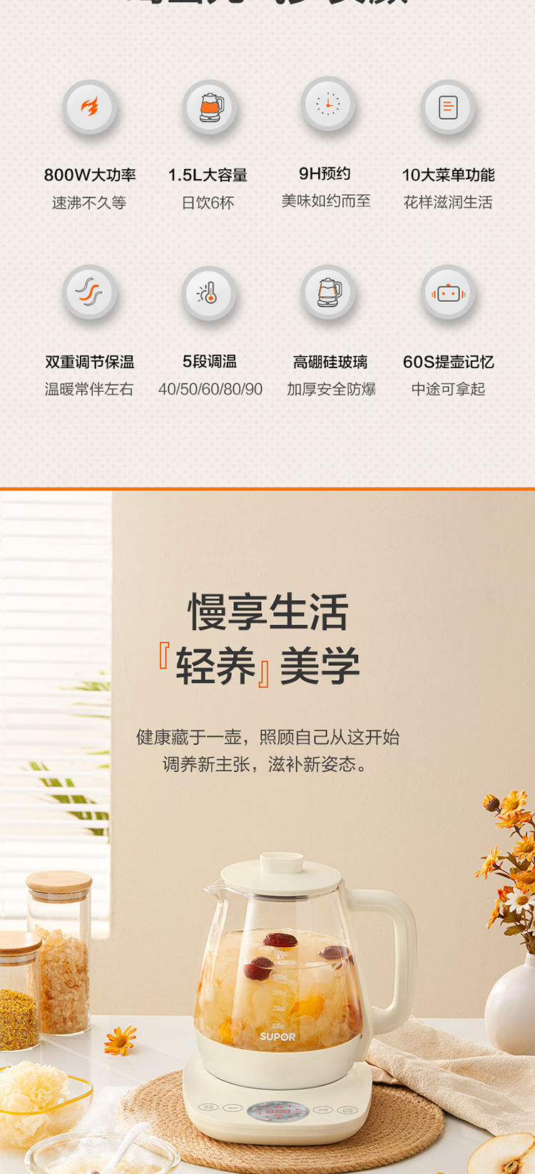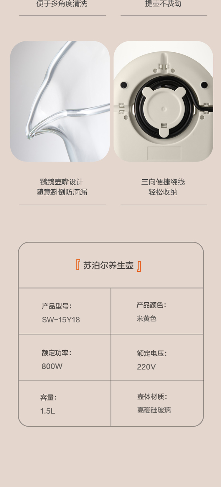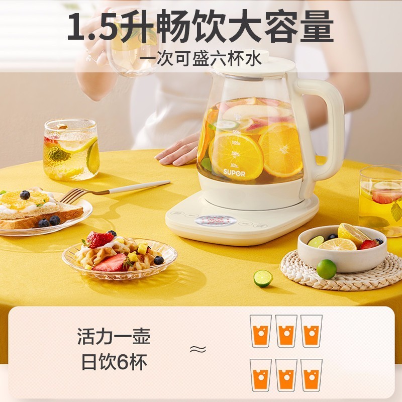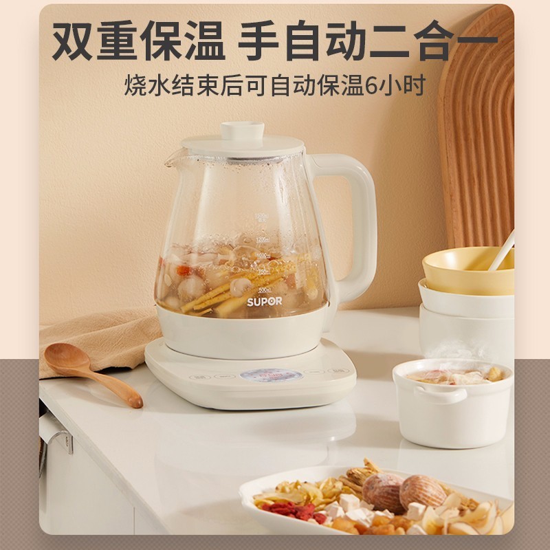 蘇泊爾(SUPOR)養(yǎng)生壺1.5L煮茶器花茶壺 電水壺?zé)畨亻_水壺保溫煮茶壺玻璃電茶壺 SW-15Y18