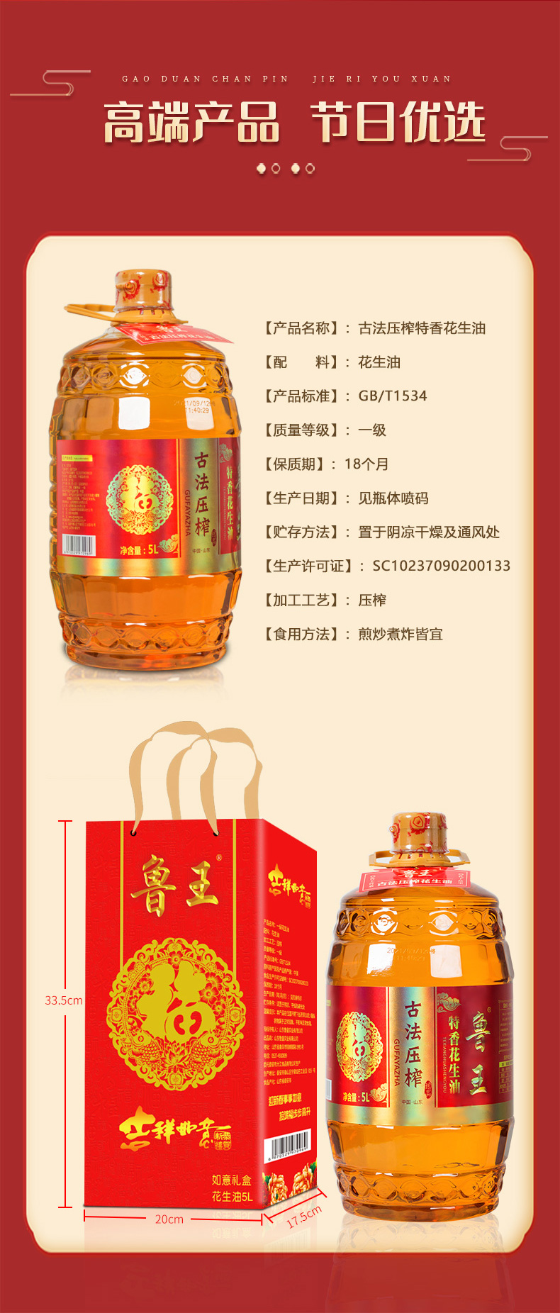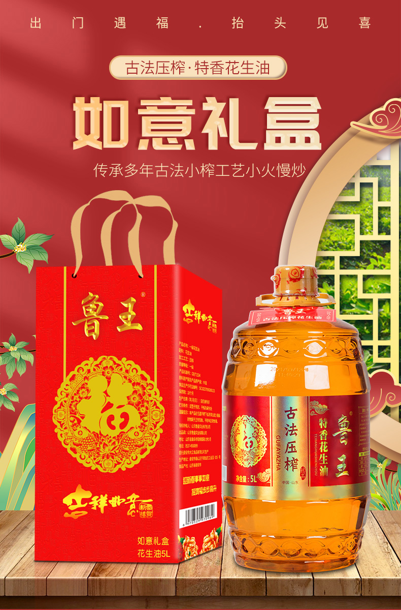魯王古法特香花生油5L如意禮盒